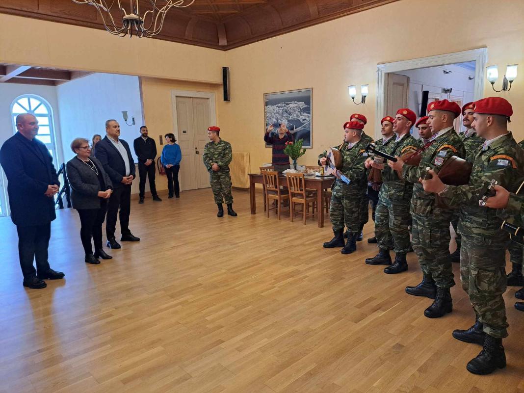 Η Αντιπεριφερειάρχης Ρεθύμνης κα Μαρία Λιονή, ο Θεματικός Αντιπεριφερειάρχης Επιχειρηματικότητας της Περιφέρειας Κρήτης, κ. Μιχάλης Βάμβουκας, ο Εντεταλμένος Περιφερειακός Σύμβουλος Πολιτικής Προστασίας της Π.Ε. Ρεθύμνης, κ. Μιχάλης Σαρρής και το προσωπικό της Περιφερειακής Ενότητας Ρεθύμνης υποδέχτηκαν τη χορωδία του 547 και του 548 Τάγματος Πεζικού, του Συλλόγου Μικρασιατών και αντάλλαξαν ευχές για τα Χριστούγεννα και τη νέα χρονιά.
