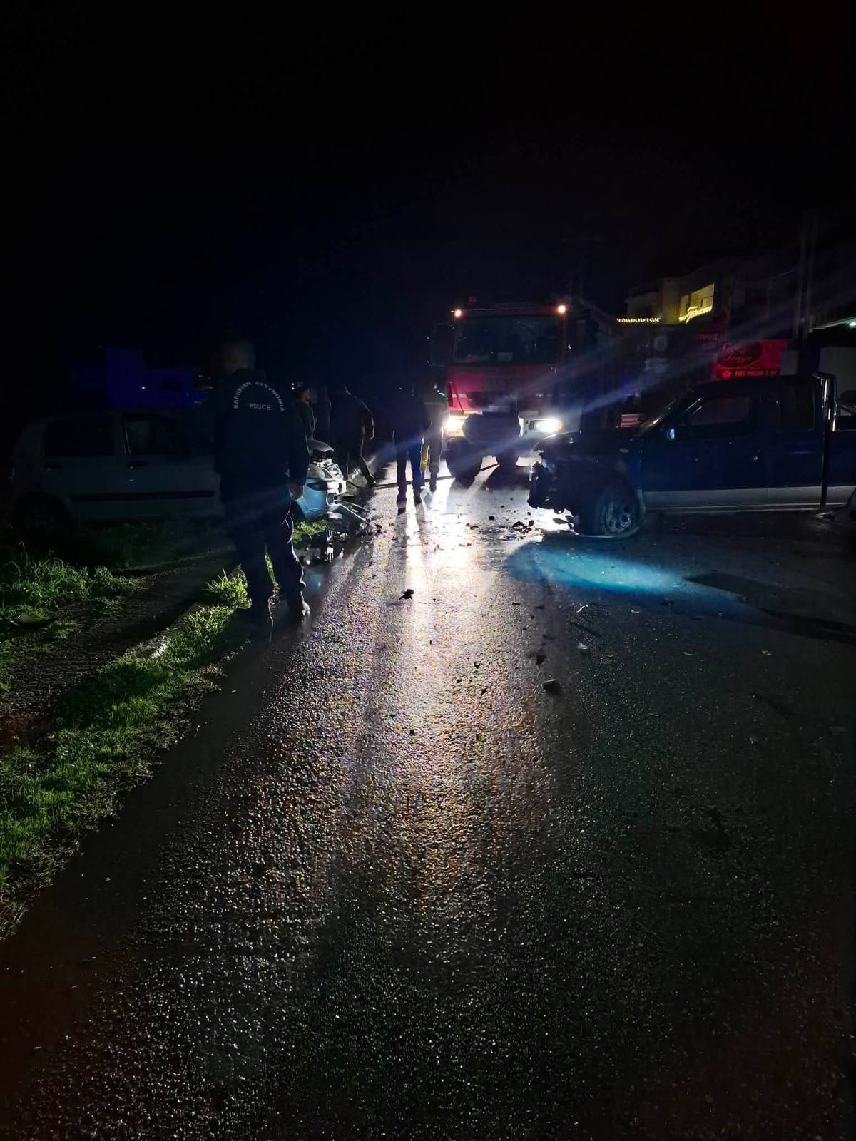 Nωρίτερα, το απόγευμα, ακόμα μια σύγκρουση οχημάτων σημειώθηκε την Κίσσαμο, στο Βουλγάρο, με το ένα όχημα να τυλίγεται στις φλόγες και ένα άτομο να διακομίζεται στο Νοσοκομείο Χανίων με κατάγματα.