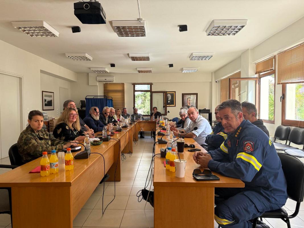Κατά την συνάντηση, έγινε μια παραγωγική συζήτηση για θέματα καλύτερης οργάνωσης της πυροπροστασίας στην περιοχή του Δήμου και δόθηκε ιδιαίτερη έμφαση στα μέτρα που πρέπει να ληφθούν για την πρόληψη του κινδύνου εκδήλωσης πυρκαγιάς. Τονίστηκε ιδιαίτερα η σημασία που πρέπει να δοθεί στην ενημέρωση όλων των Δημοτών.