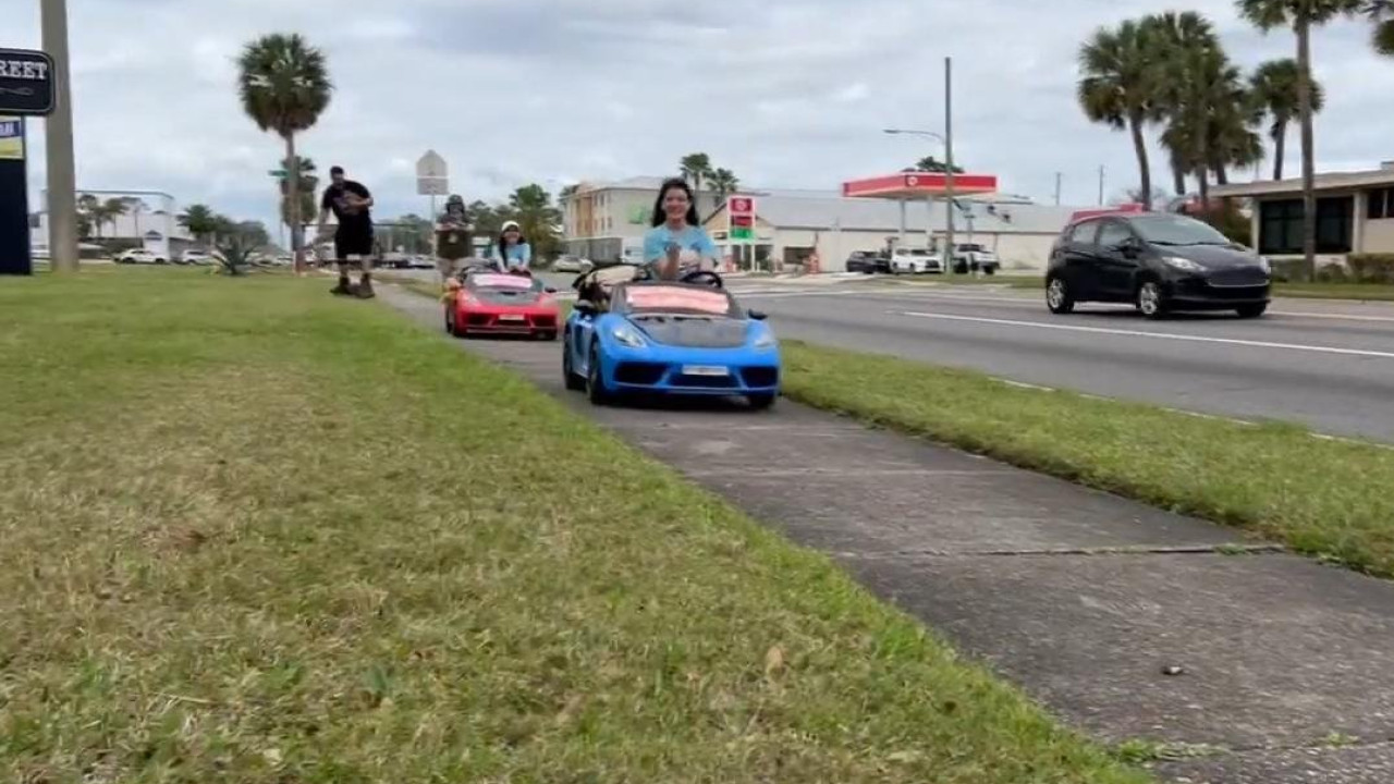 Η Κάσι και η φίλη της, Λόρεν καταγράφουν τις περιπέτειές τους στα μέσα κοινωνικής δικτύωσης αφού ξεκίνησαν από το Τζάκσονβιλ το ταξίδι με τα παιδικά αυτοκίνητα.