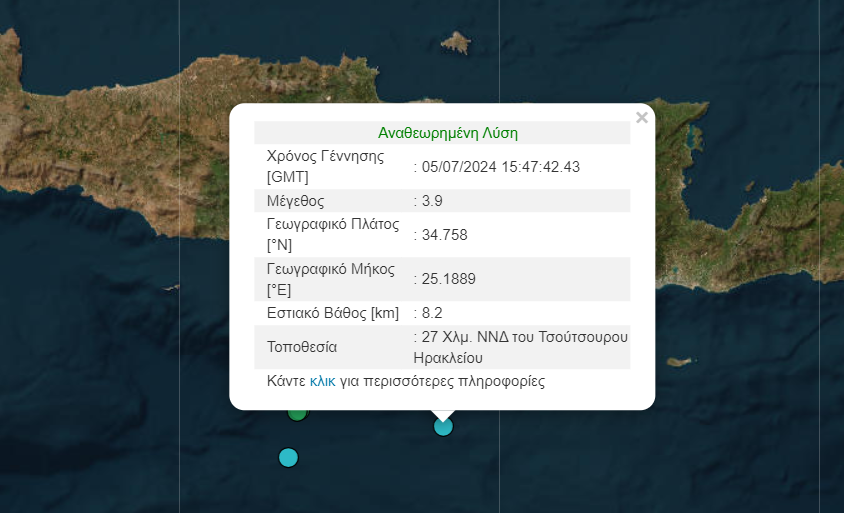Ο σεισμός σημειώθηκε και σύμφωνα με την αναθεωρημένη λύση του Γεωδυναμικού Ινστιτούτου του Εθνικού Αστεροσκοπείου Αθηνών, το επίκεντρο εντοπίζεται 27 χιλιόμετρα νότια – νοτιοδυτικά του Τσούτσουρα Ηρακλείου.