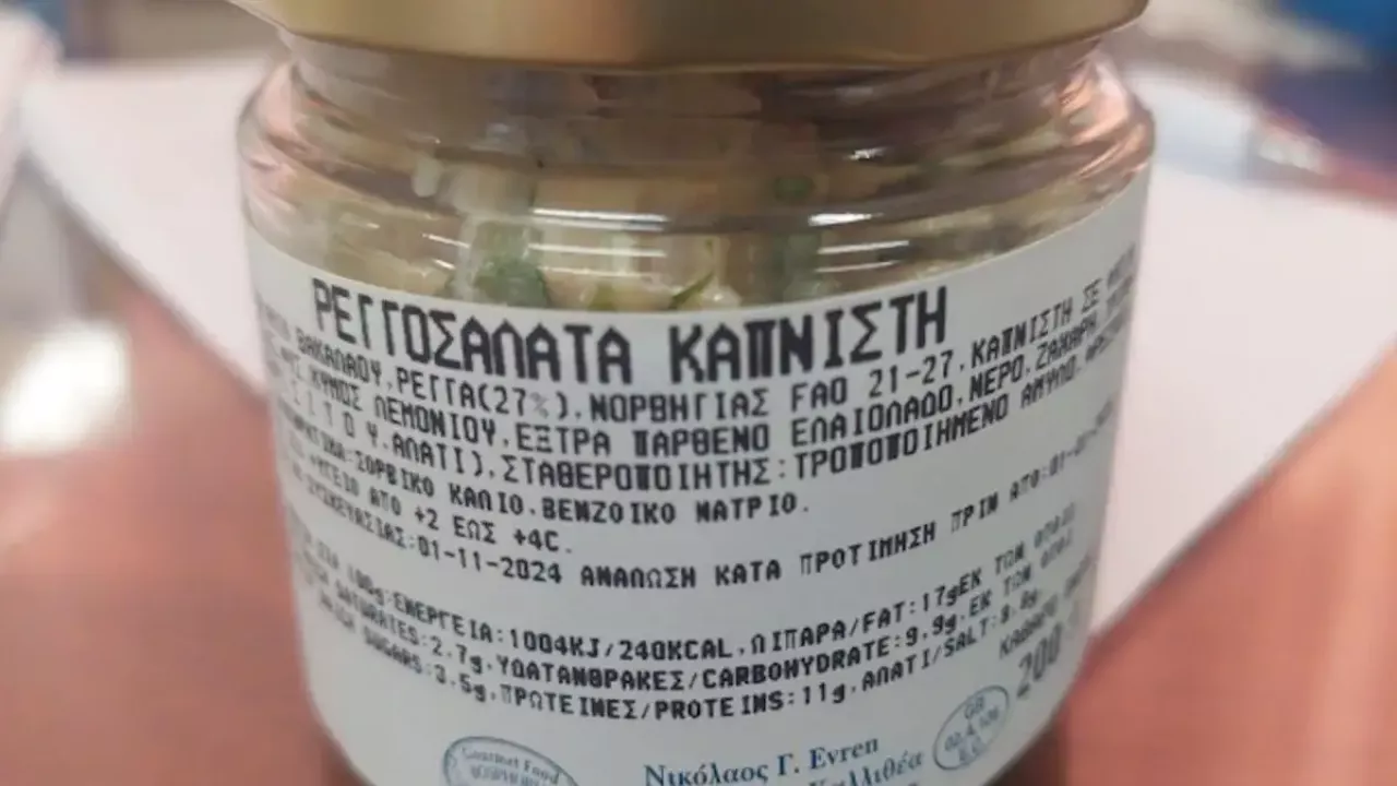 Συγκεκριμένα, πρόκειται για ρεγγοσαλάτα καπνιστή με την επωνυμία «GOURMET FOOD BOSRHOROUS», η οποία διακινείται στην Ελλάδα σε συσκευασίες των 200 γρ. από την επιχείρηση «Νικόλαος Γ. Evren» (Σαλαμίνος 50, Καλλιθέα Αττικής).
