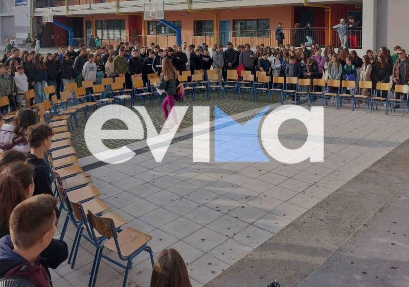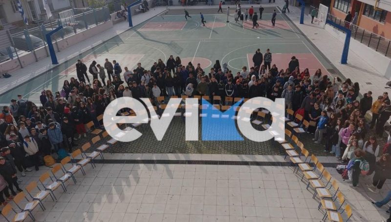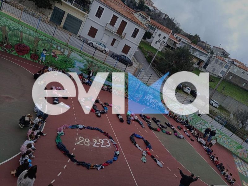 Από τη Χαλκίδα μέχρι το Αλιβέρι, τα παιδιά συγκεντρώνονται στα προαύλια των σχολείων τους και σχηματίζουν με τα σώματα, τα ρούχα και τις τσάντες το μήνυμα που προκαλεί ανατριχίλα και δέος.
