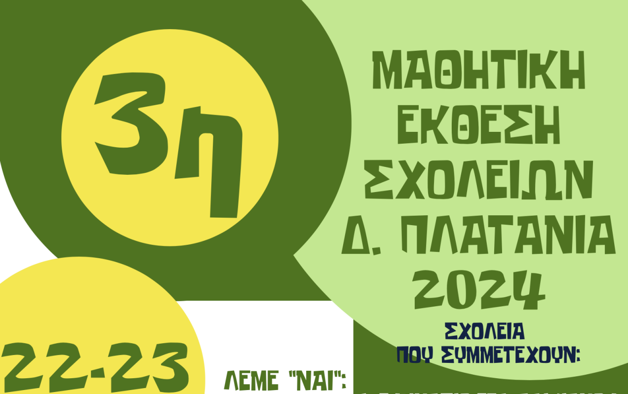 Η Β/θμια Σχολική Επιτροπή του Δήμου Πλατανιά, σας προσκαλεί στα εγκαίνια της 3ης Μαθητικής Έκθεσης Δημιουργίας των Σχολείων της Β/θμιας Εκπαίδευσης του Δήμου Πλατανιά, που θα πραγματοποιηθεί στην Ορθόδοξο Ακαδημία Κρήτης στο Κολυμπάρι.