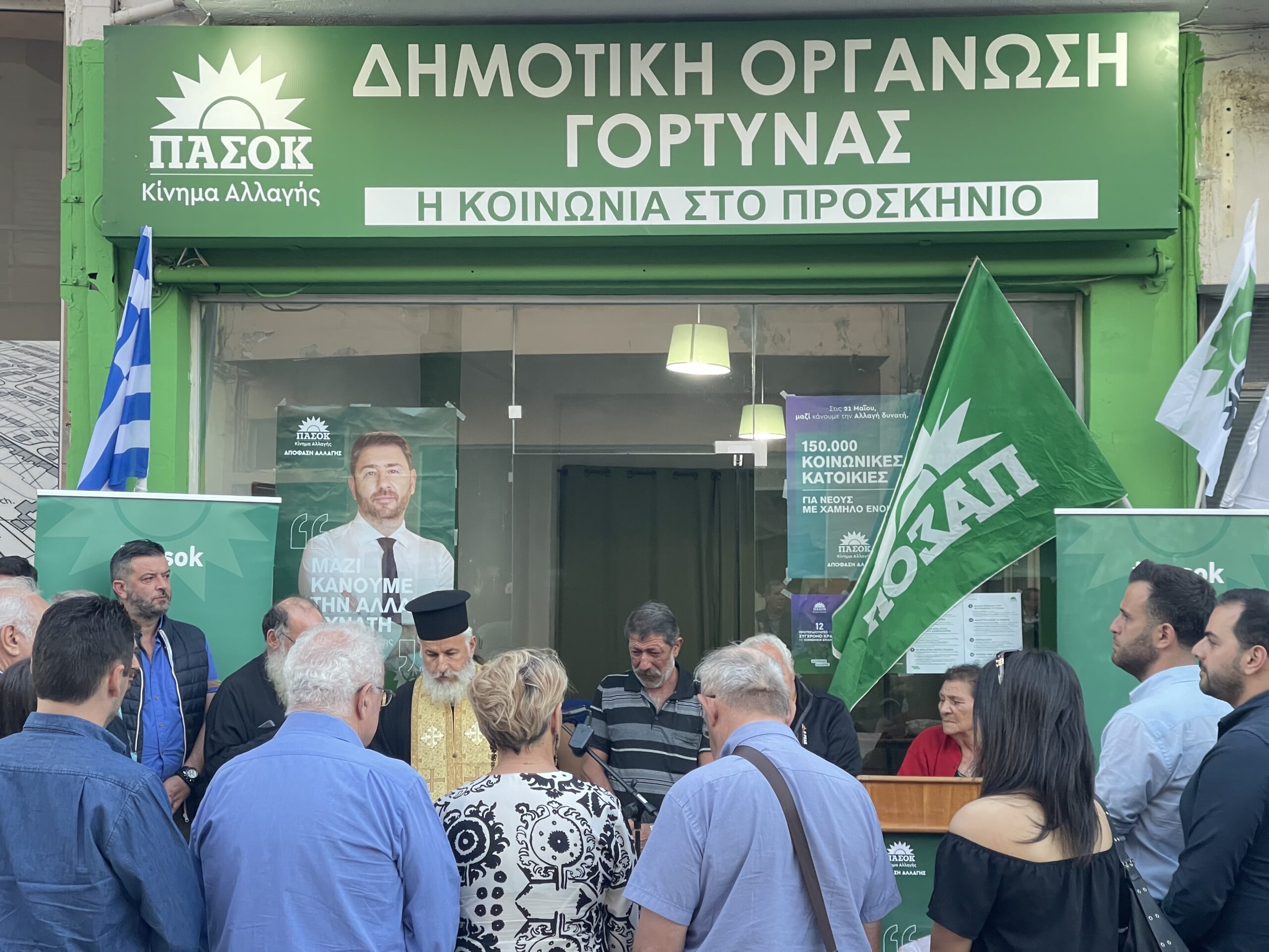 Σε μια περιοχή, όπου το ΠΑΣΟΚ-Κίνημα Αλλαγής κατέγραψε από τα υψηλότερα ποσοστά σε πανελλαδικό επίπεδο, εγκαινιάστηκαν χθες μέσα σε κλίμα αισιοδοξίας τα νέα γραφεία της Δημοτικής Οργάνωσης ΠΑΣΟΚ Γόρτυνας. Παρουσία του Γραμματέα και των Μελών της Δημοτικής Οργάνωσης, πλήθους μελών και φίλων της Οργάνωσης από την Αγία Βαρβάρα και τα κοντινά χωριά στάλθηκε μήνυμα συσπείρωσης και συνέχισης του αγώνα ως τις 25 του Ιούνη.