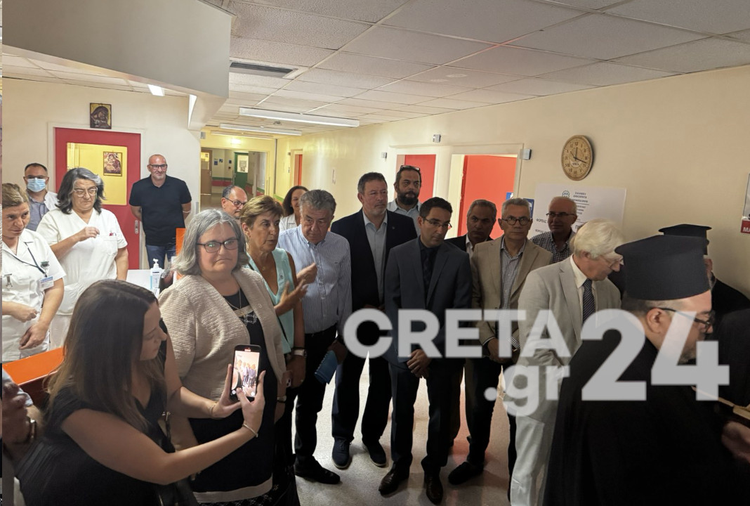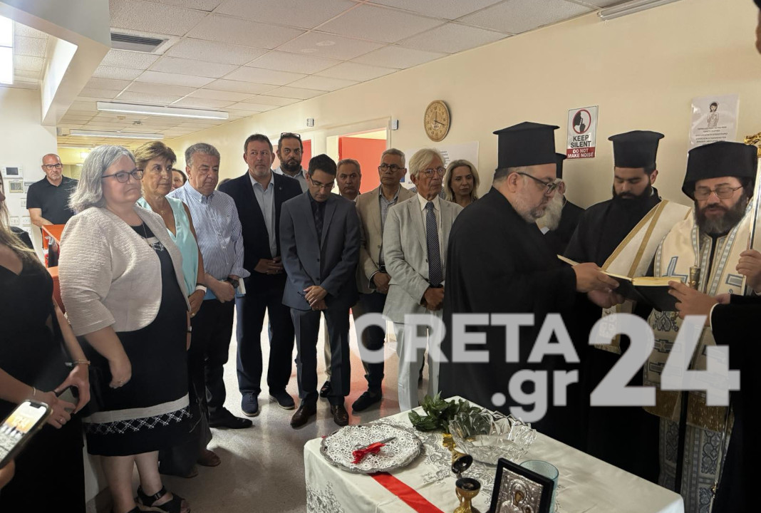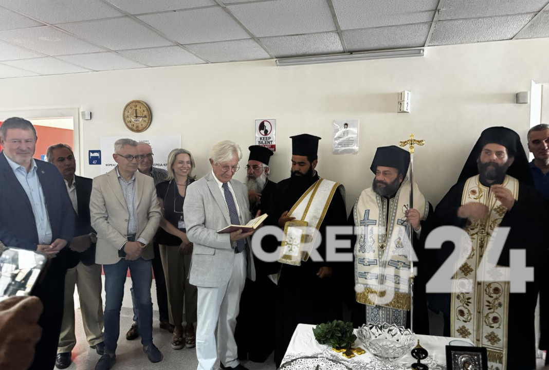 Τον Αγιασμό τέλεσε ο κρητικής καταγωγής Μητροπολίτης Νέας Ζηλανδίας Μύρων, παρουσία του Σεβασμιώτατου Αρχιεπίσκοπου Κρήτης κ.κ. Ευγένιου, της διοίκησης του νοσοκομείου, του Περιφερειάρχη Κρήτης και μελών της Παγκρητικής Ένωσης Αμερικής.