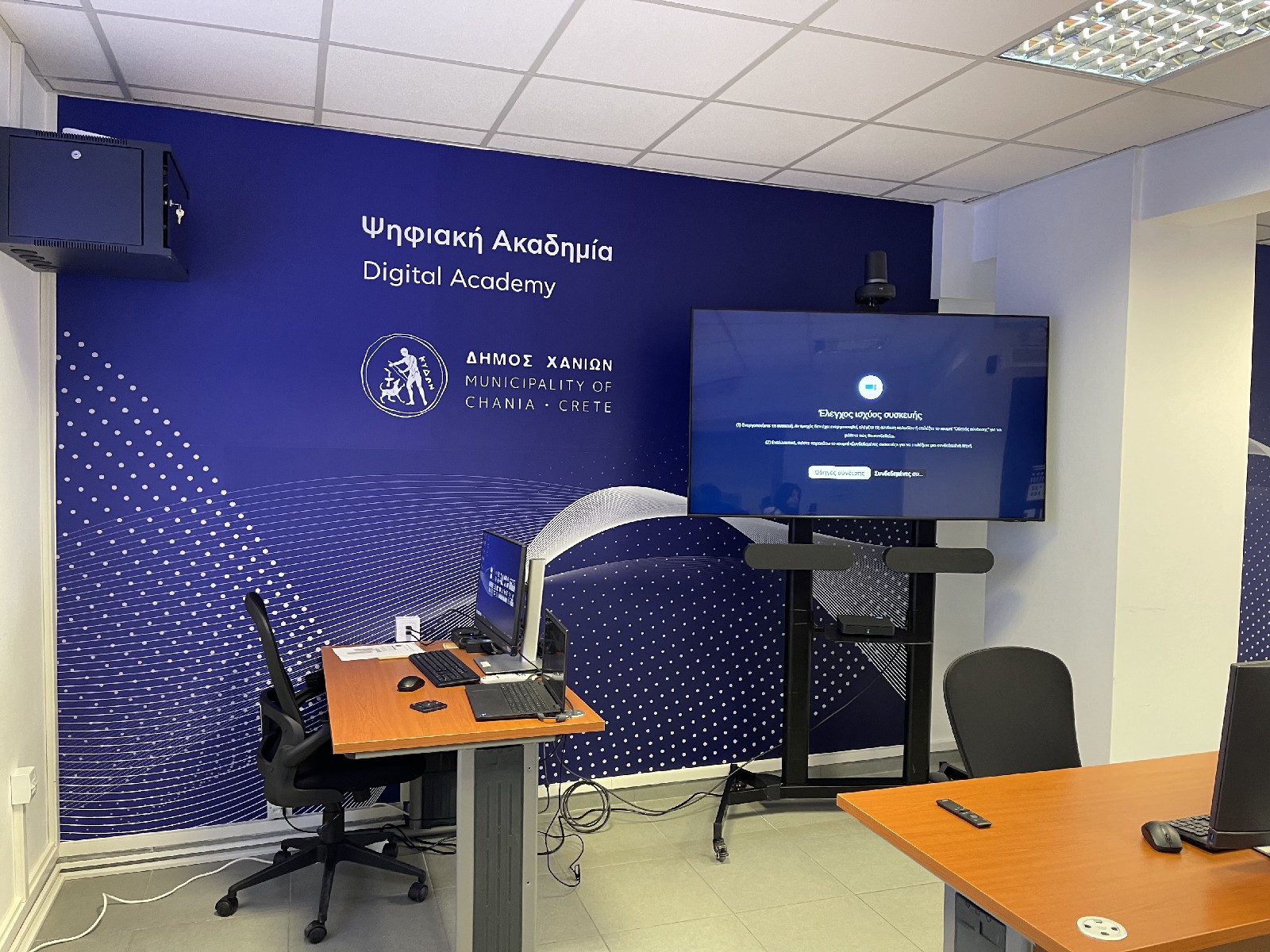 Η νέα Ψηφιακή Ακαδημία του Δήμου Χανίων, δημιουργήθηκε σε ειδικά διαμορφωμένη αίθουσα στον πρώτο όροφο του κτηρίου του Δήμου Χανίων στην οδό Γρηγορίου Ε΄ και είναι εξοπλισμένη με τελευταίας τεχνολογίας υλικό που επιτρέπει σε εργαζόμενους του Δήμου Χανίων αλλά και σε πολίτες, να επιμορφώνονται, αναπτύσσοντας τις ψηφιακές τους δεξιότητες. Διαθέτει 13 σύγχρονους, τελευταίας τεχνολογίας, ηλεκτρονικούς υπολογιστές, διαδραστικά εργαλεία επικοινωνίας, σύγχρονους διαδραστικούς πίνακες και τηλεοράσεις καθώς και προηγμένο σύστημα τηλεδιασκέψεων.