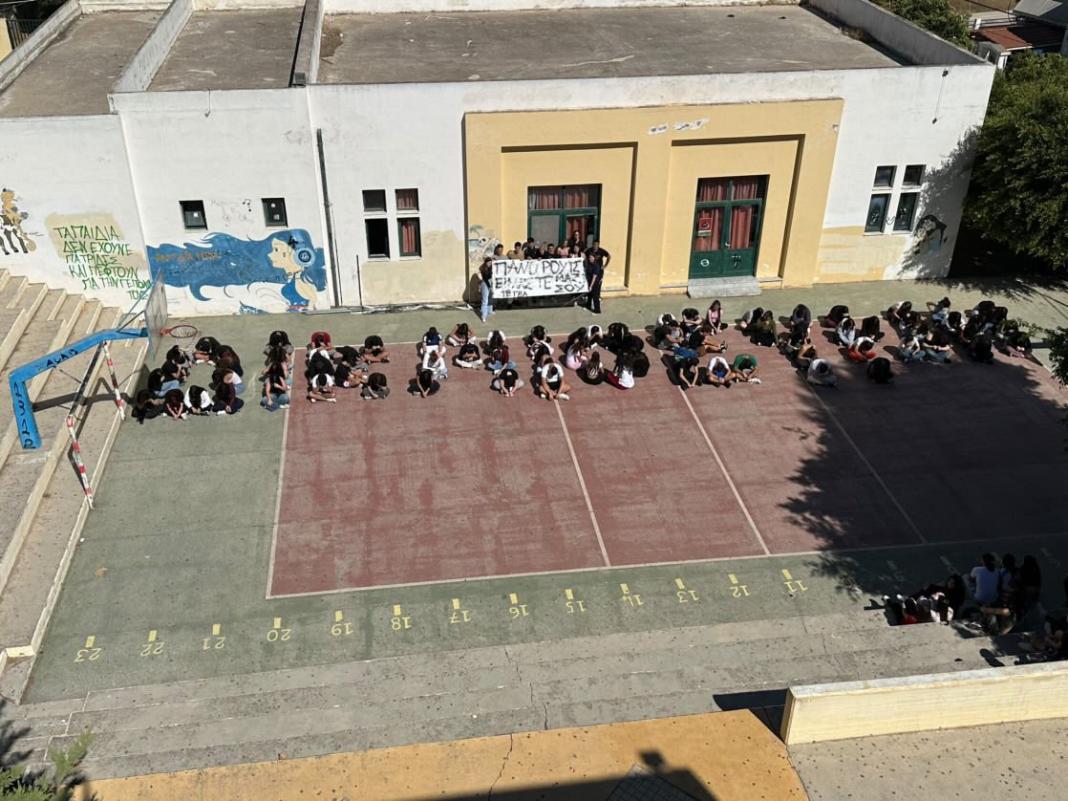 Σήμερα, Δευτέρα 6 Οκτωβρίου 2025, το 15μελές Συμβούλιο και η μαθητική κοινότητα του 11ου Γενικού Λυκείου Ηρακλείου προχώρησαν σε συμβολικές δράσεις αλληλεγγύης και συμπαράστασης στον απεργό πείνας Πάνο Ρούτσι. Ανάρτησαν πανό στο σχολείο και σχημάτισαν με τα σώματά τους τη λέξη ΔΙΚΑΙΟΣΥΝΗ στο προαύλιο του σχολείου, προκειμένου να εκφράσουν τη στήριξή τους στο αίτημα του πατέρα των Τεμπών για δικαίωση του παιδιού του και των υπολοίπων νεκρών του εγκλήματος.