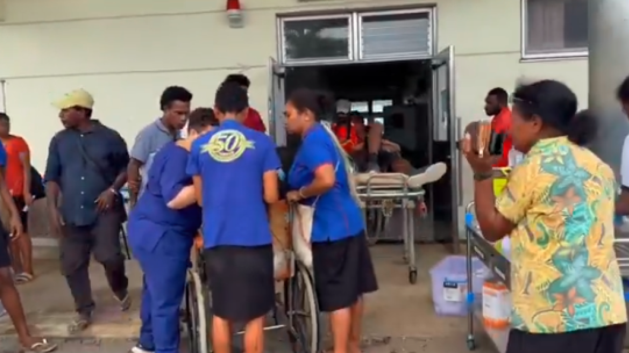 Ο κρατικός ραδιοτηλεοπτικός σταθμός VBTC του Βανουάτου έδειξε πλάνα από οχήματα που συνθλίβονται σε κατάρρευση κτιρίου σε δρόμο γεμάτο λιανοπωλητές. Ο τηλεοπτικός σταθμός ανέφερε ότι ένα άτομο είχε παγιδευτεί σε ένα κτίριο που κατέρρευσε.