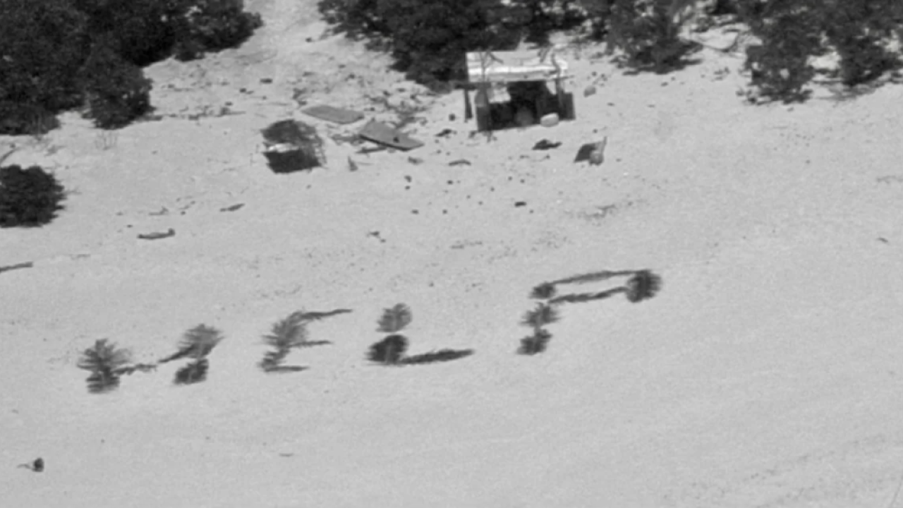 Η λέξη «HELP», δηλαδή «ΒΟΗΘΕΙΑ» που έγραψαν τρεις ναυαγοί που είχαν εγκλωβιστεί σε μια μικρή νησίδα του Ειρηνικού Ωκεανού για περισσότερο από μια εβδομάδα, χρησιμοποιώντας φύλλα φοίνικα σε μια παραλία με λευκή άμμο στάθηκε σωτήρια γι αυτούς αφού κατάφεραν διασώθηκαν σε επιχείρηση του Αμερικανικού Ναυτικού και της Ακτοφυλακής την Τρίτη.