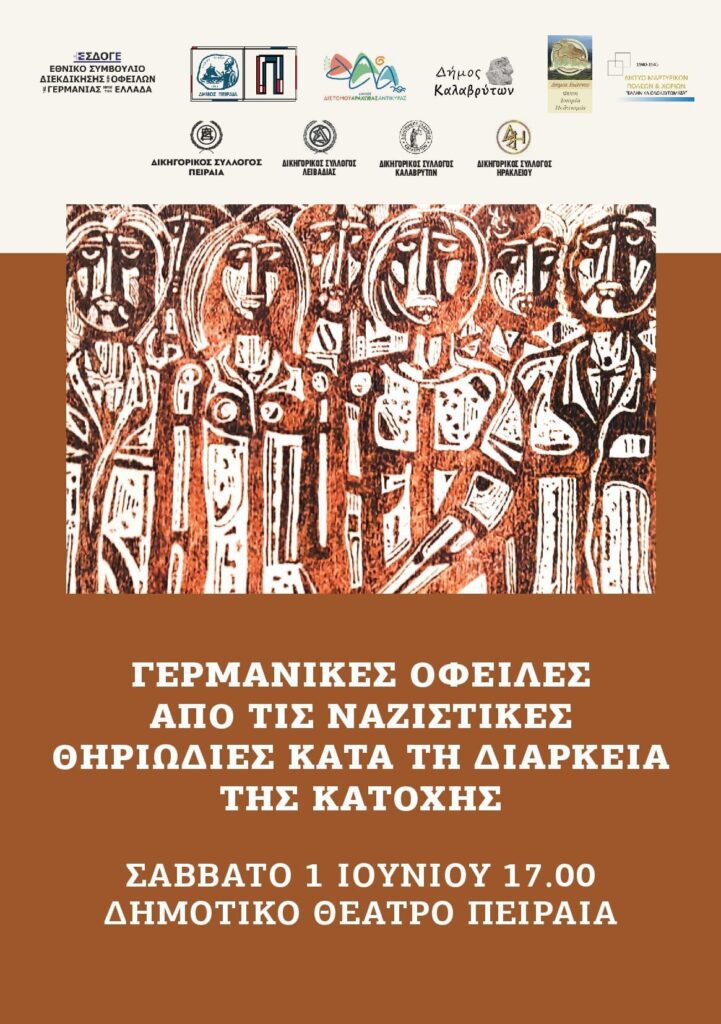 Συγκεκριμένα, όπως αποφασίστηκε, την 1η Ιουνίου θα πραγματοποιηθεί η Ημερίδα που θα είναι αφιερωμένη στις «γερμανικές οφειλές από τις ναζιστικές θηριωδίες κατά τη διάρκεια της γερμανικής Κατοχής», στο Δημοτικό Θέατρο Πειραιά.