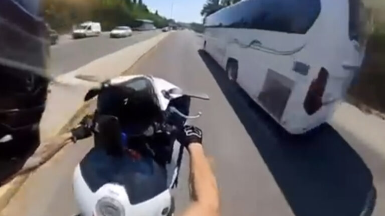 Όπως φαίνεται και στο βίντεο-ντοκουμέντο, ο νεαρός για 20 δευτερόλεπτα κινείται στη μία ρόδα σε δρόμο της Αθήνας ενώ προσπερνάει και λεωφορείο που κινείται στη δεξιά πλευρά του δρόμου.