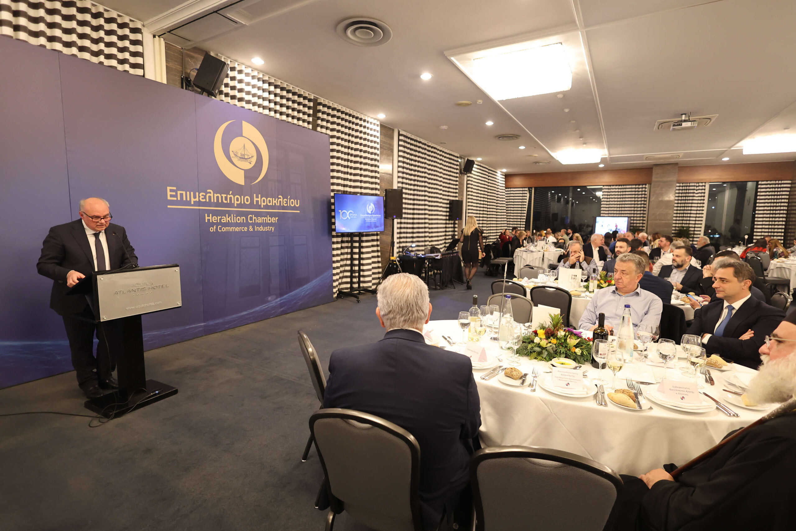 Την καθιερωμένη εκδήλωση για την έλευση του νέου έτους πραγματοποίησε η Διοίκηση του Επιμελητηρίου Ηρακλείου την Παρασκευή 12 Ιανουαρίου, παρουσία εκπροσώπων της Κυβέρνησης, του Κοινοβουλίου, της Αυτοδιοίκησης, των Σωμάτων Ασφαλείας, των εργαζομένων και της τοπικής επιχειρηματικότητας.