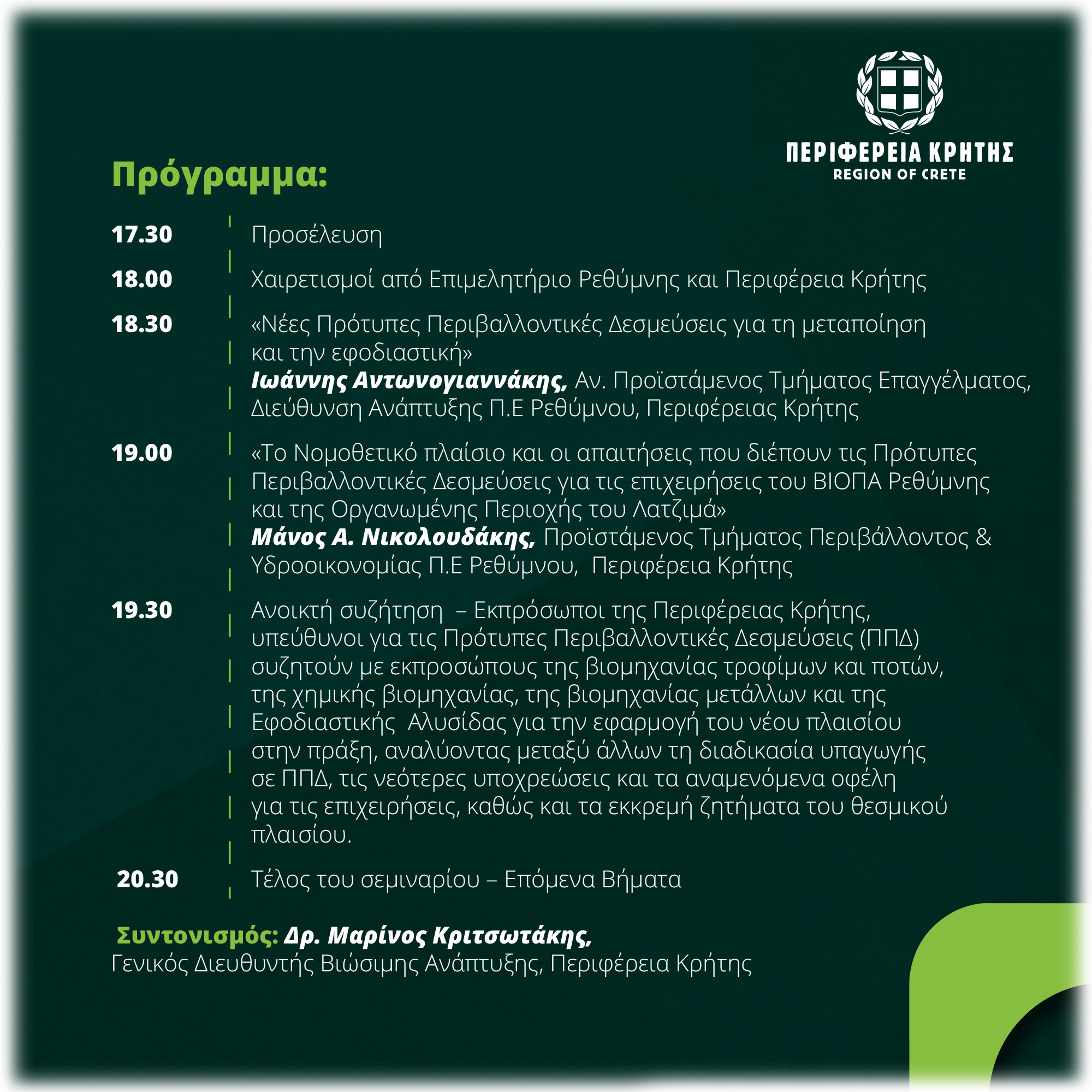 Το άρθρο “Εκδήλωση στο Επιμελητήριο Ρεθύμνης για τις νέες πρότυπες περιβαλλοντικές δεσμεύσεις για τη μεταποίηση και την εφοδιαστική αλυσίδα“, δημοσιεύθηκε για πρώτη φορά στο CRETA24.