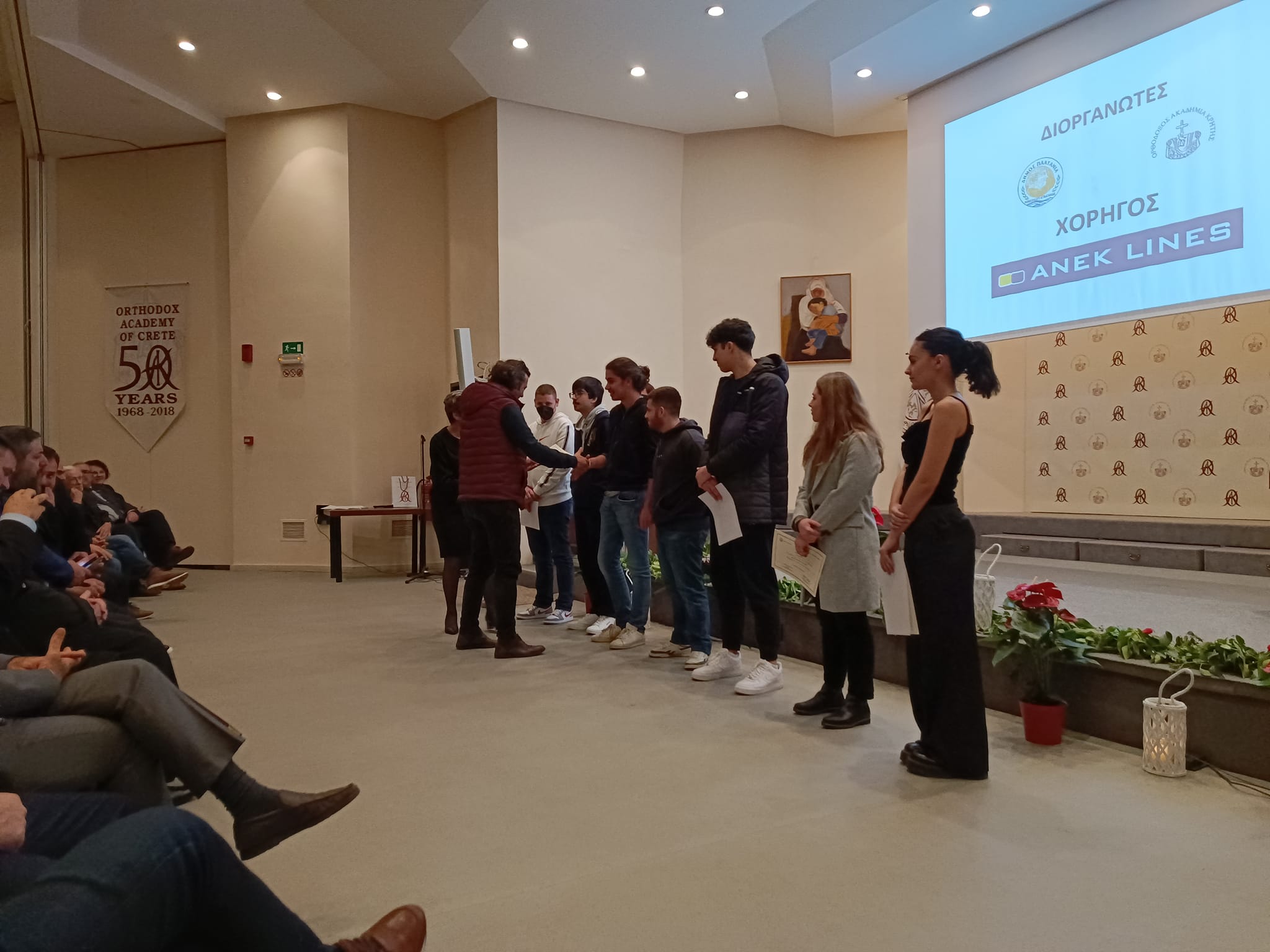 Πραγματοποιήθηκε, το Σάββατο 6 Ιανουαρίου 2024, στην Ορθόδοξη Ακαδημία Κρήτης, στο Κολυμπάρι, η καθιερωμένη εκδήλωση υποδοχής του νέου έτους και βράβευσης των πρωτοετών φοιτητών του Δήμου Πλατανιά.