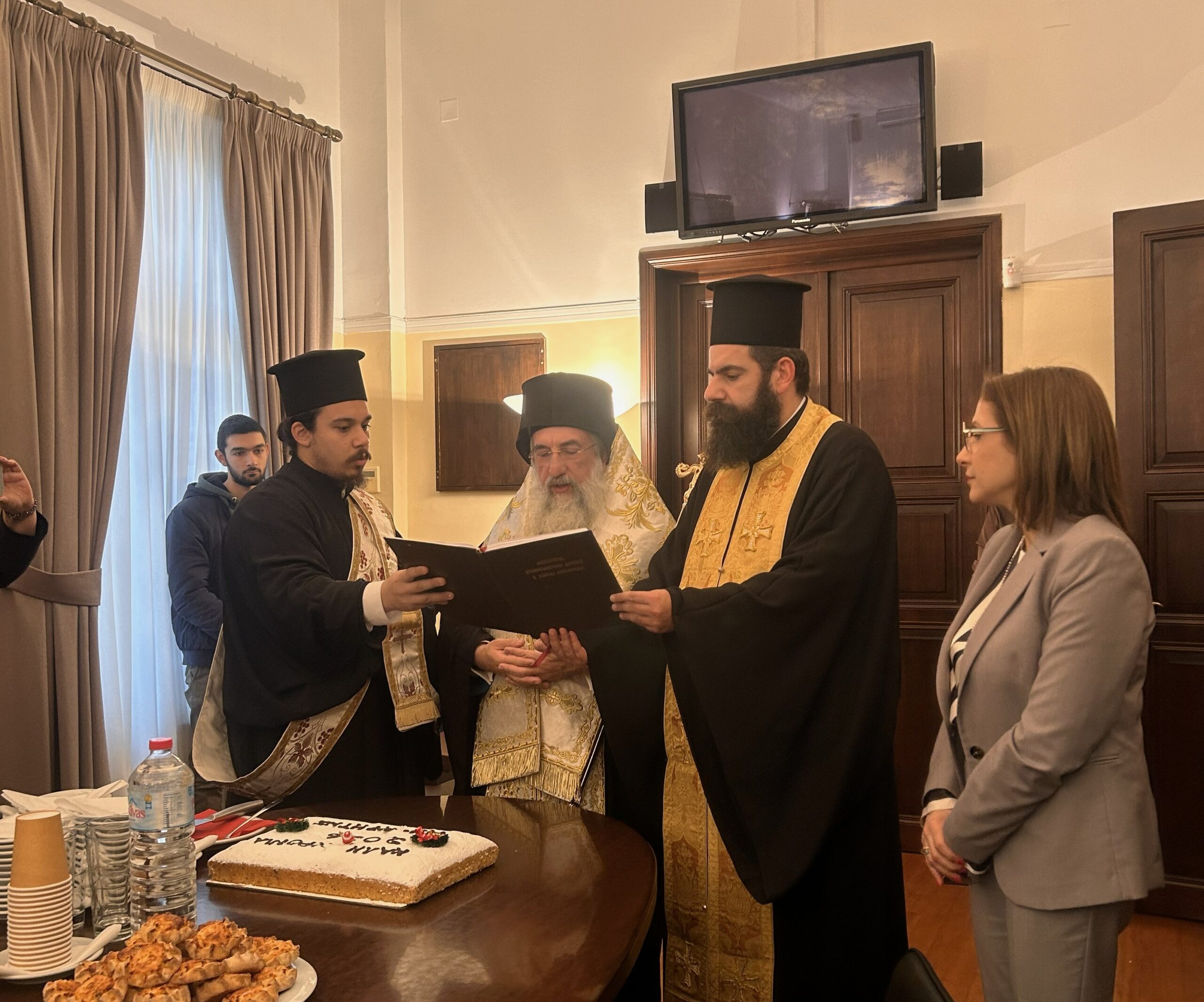 Με τις ευχές και την ευλογία του Αρχιεπισκόπου Κρήτης κ.κ. Ευγενίου, πραγματοποιήθηκε στο κεντρικό κτίριο της Αποκεντρωμένης Διοίκησης Κρήτης στο Ηράκλειο η τελετή κοπής της βασιλόπιτας και του Αγιασμού για το νέο έτος 2026.