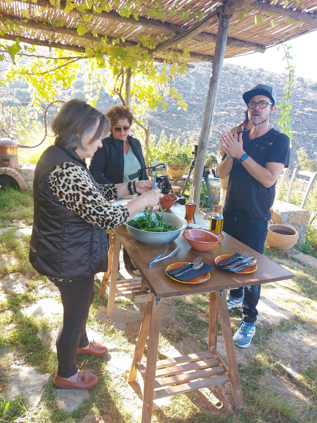 Ο κ. Κοντιζάς και το κινηματογραφικό του συνεργείο βρέθηκαν στη Φάρμα Πεσκέσι, συνομιλώντας στα γυρίσματα με την Αντιδήμαρχο Πολιτισμού Καλλιόπη Αποστολογιωργάκη, τον Πρόεδρο του Αγροτικού Συνεταιρισμού Θραψανού Μανώλη Λυπαράκη και την κυρία Μαρια Δοργιομανωλακη η οποία έφτιαξε με τον δημοφιλή Σεφ μία νόστιμη σαλάτα με ωμά χόρτα από το Θραψανό. Ο κ. Κοντιζάς έδειξε ενθουσιασμένος από την απλότητα του πιάτου που όμως χάρη στο εξαιρετικό θραψανιώτικο λάδι, είχε μοναδική γεύση.