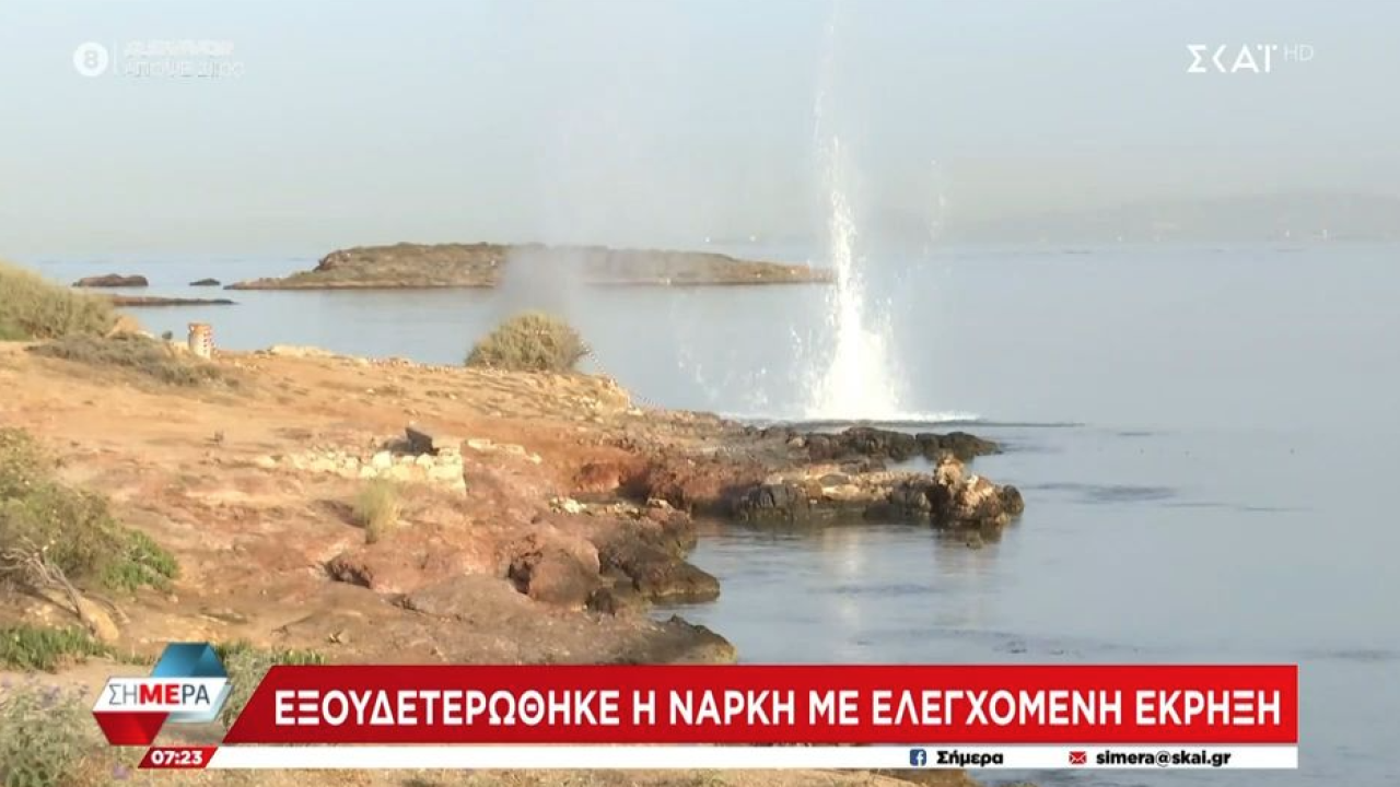 Σε ελεγχόμενη έκρηξη στην παραλία του Καβουριού προχώρησαν νωρίς το πρωί πυροτεχνουργοί για την εξουδετέρωση νάρκης που εντοπίστηκε μέσα στη θάλασσα, στο Καβούρι.