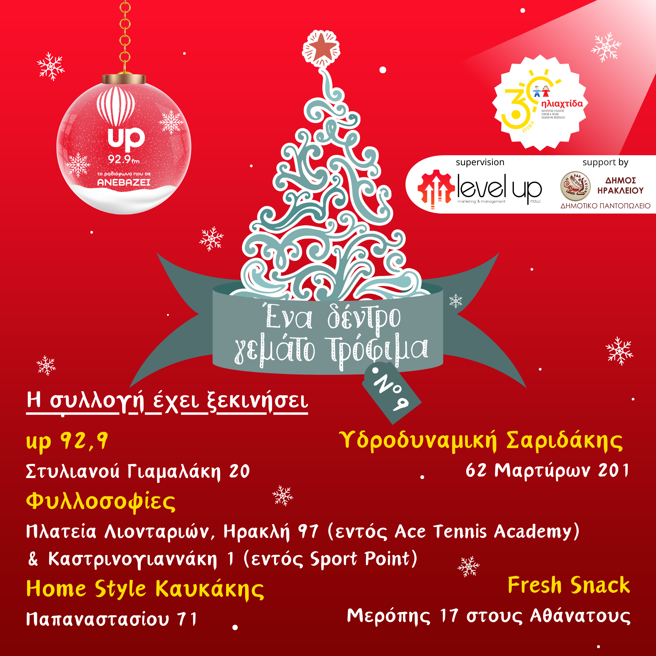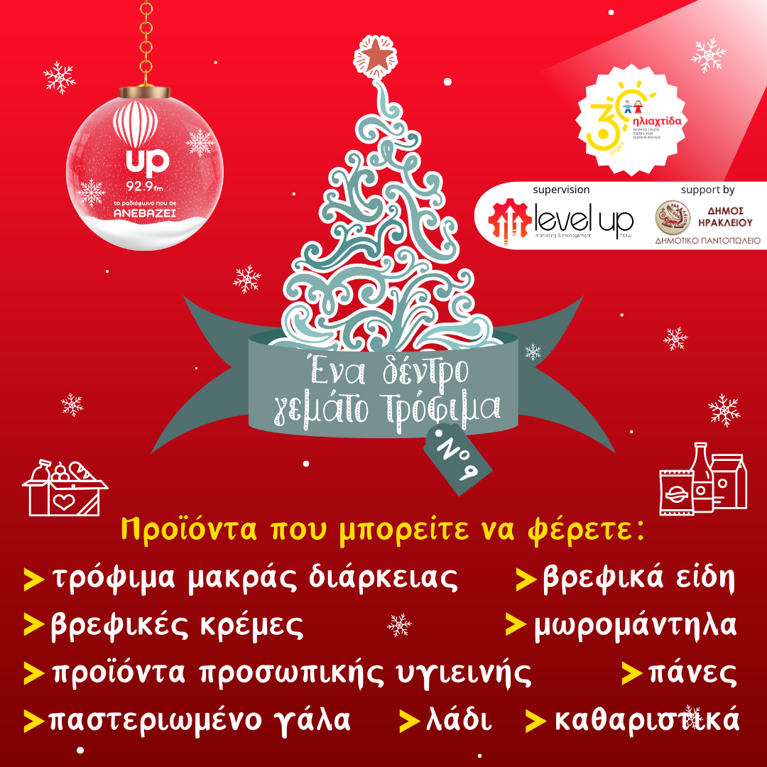 Για 9η χρονιά ο up 92,9 διοργανώνει την φιλανθρωπική εκδήλωση «Ένα Δέντρο Γεμάτο Τρόφιμα».