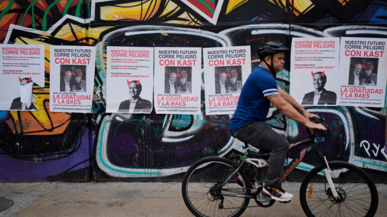 «Η χώρα καταρρέει», υποστηρίζει ο Χοσέ Αντόνιο Καστ, ο οποίος εμφανιζόταν πίσω από αλεξίσφαιρα τζάμια σε προεκλογικές συγκεντρώσεις, να παρουσιάζει μια Χιλή βυθισμένη στο χάος.