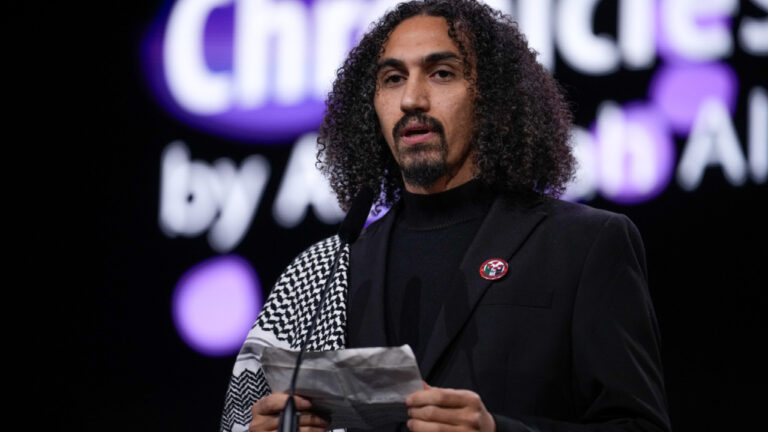 «Κάποιοι μου είπαν ότι ίσως πρέπει να προσέχω πριν πω αυτά που θέλω να πω τώρα, επειδή είμαι πρόσφυγας στη Γερμανία και υπάρχουν τόσες πολλές κόκκινες γραμμές. Αλλά δεν με νοιάζει. Με νοιάζει ο λαός μου, η Παλαιστίνη», δήλωσε ο Al-Khatib το βράδυ του Σαββάτου, φορώντας μια παλαιστινιακή μαντήλα (κεφίγια) και υψώνοντας τη σημαία της Παλαιστίνης στο τέλος της ομιλίας του.