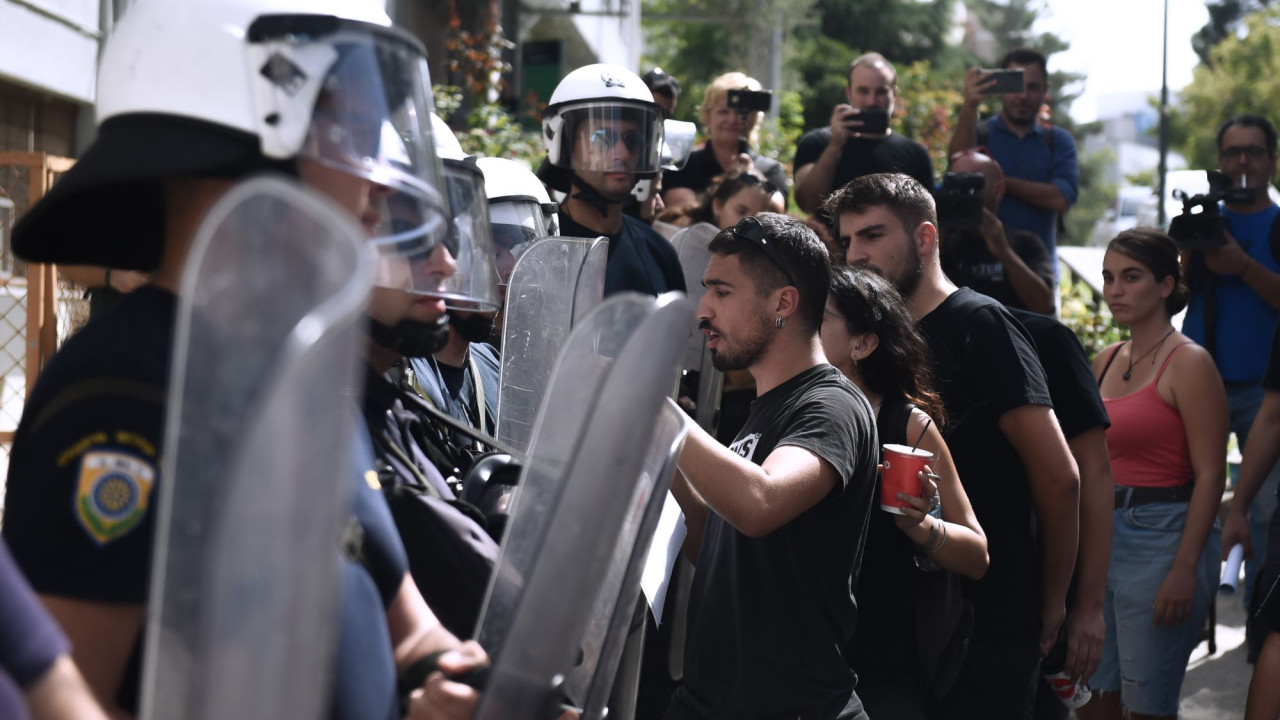 Ακολούθως, κατά την ίδια ανακοίνωση, «αστυνομικές δυνάμεις προκειμένου να απεγκλωβιστεί ο Πρύτανης και να διασφαλισθεί η σωματική του ακεραιότητα, πραγματοποίησαν συντονισμένη επιχείρηση, κατά την οποία συνελήφθησαν πέντε άτομα», ενώ την ίδια ώρα «συγκεντρωμένοι προέβησαν στη ρίψη αντικειμένων προς τις αστυνομικές δυνάμεις, κάνοντας και χρήση πυροσβεστήρα, με αποτέλεσμα να προκληθούν φθορές σε εξοπλισμό και στο κτίριο».