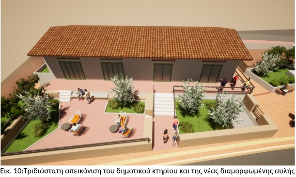- Η αρμονική συνύπαρξη και σύνδεση της πλατείας με τα πεζοδρόμια κίνησης και τον υπαίθριο χώρο του δημοτικού κτηρίου, ώστε αυτά να αποτελέσουν έναν χώρο ζωντανό με ενιαία αισθητική και προσβασιμότητα χωρίς περιττούς αναβαθμού και εμπόδια κίνησης.