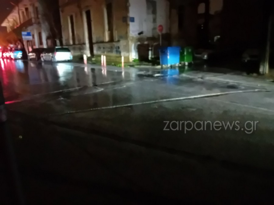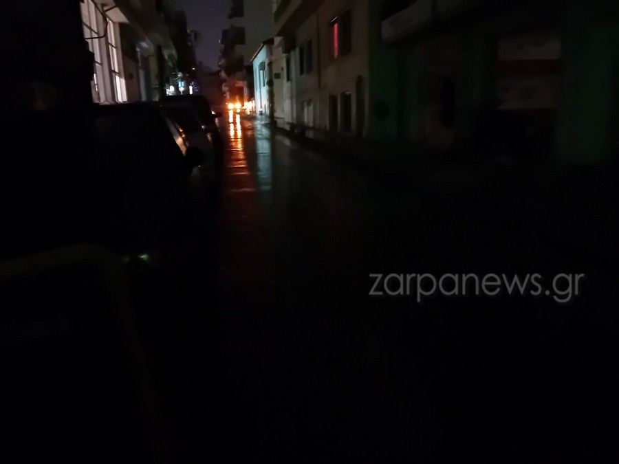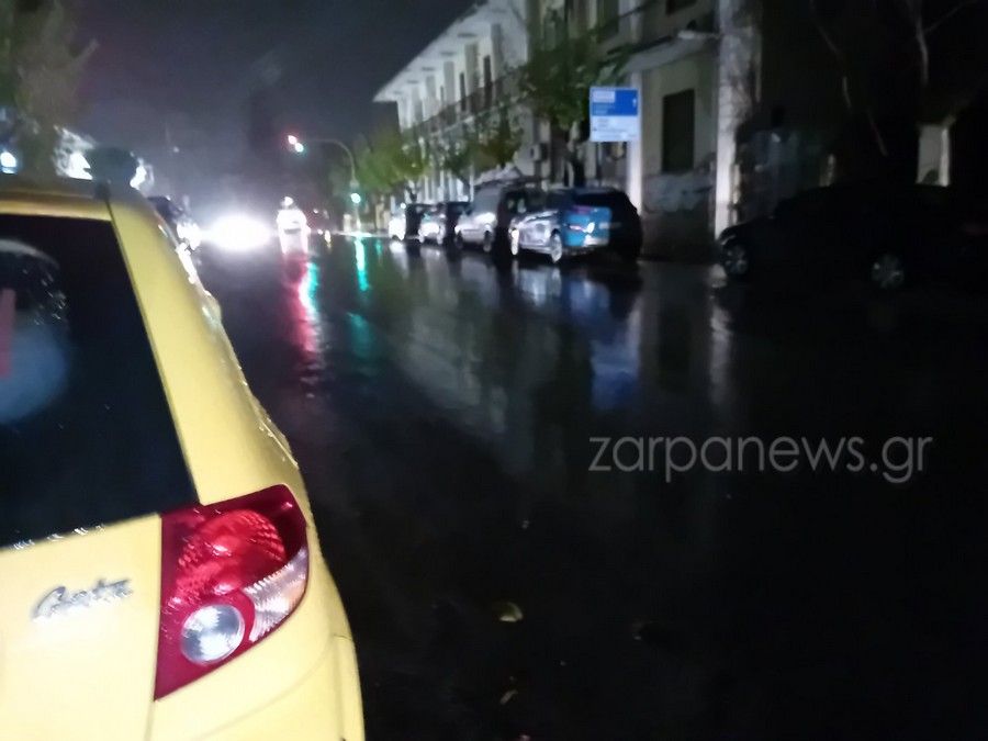 Στο σκοτάδι έχουν βυθιστεί σημεία του κέντρου των Χανίων, με τις κολώνες ηλεκτροδότησης να μη λειτουργούν λόγω της βροχής.