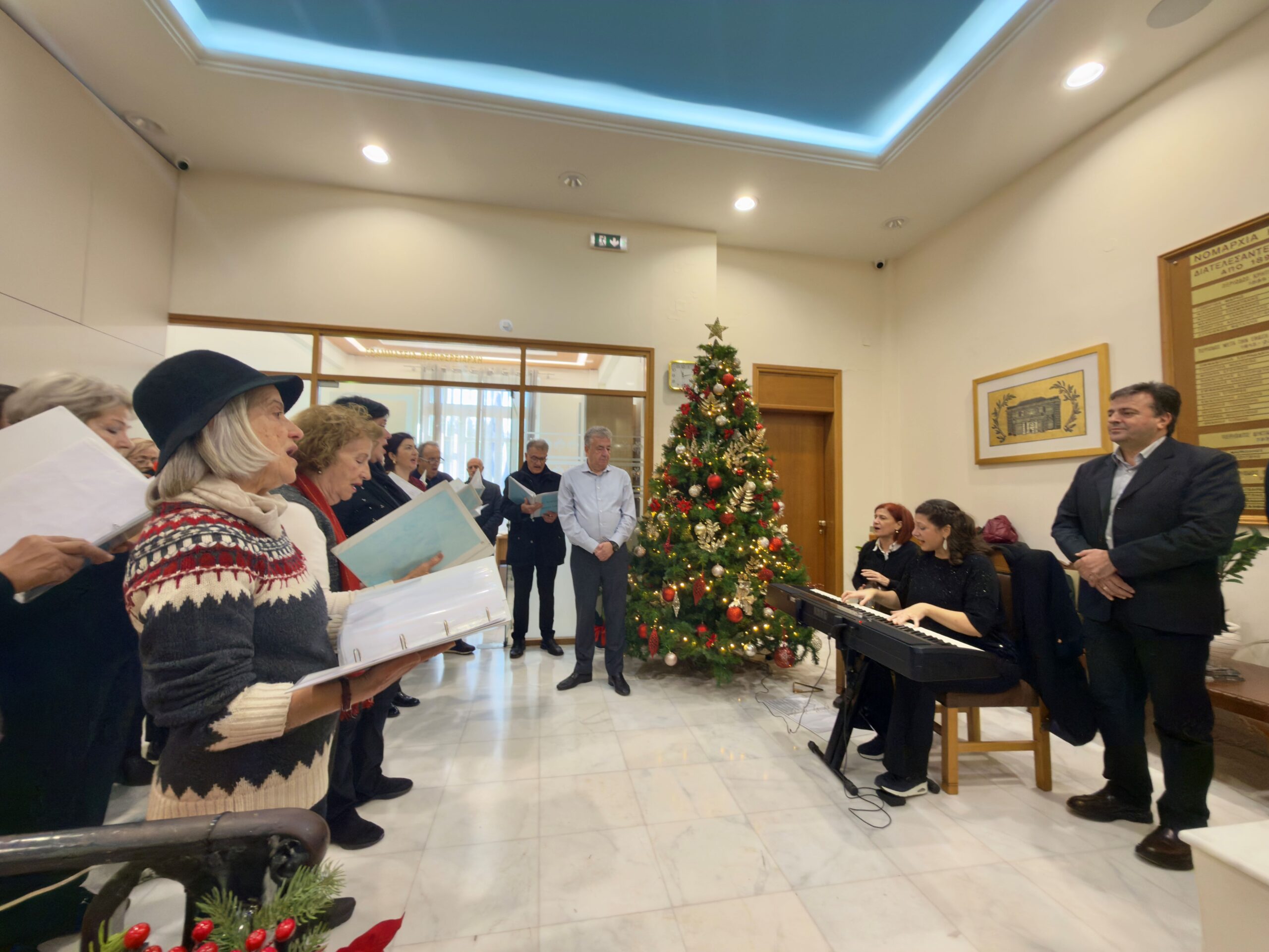 Στη συνέχεια ο Περιφερειάρχης Κρήτης υποδέχτηκε την χορωδία «Ιωνία Αηδών», η οποία υπό τη διεύθυνση της μαέστρου Λένας Χατζηγεωργίου έψαλε τα παραδοσιακά κάλαντα της Κρήτης αλλά και της Κεφαλονιάς.