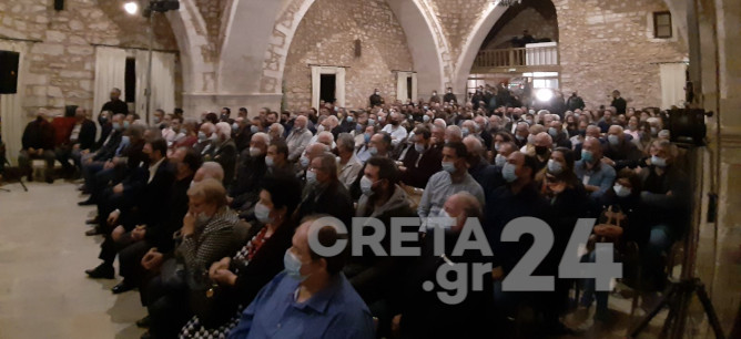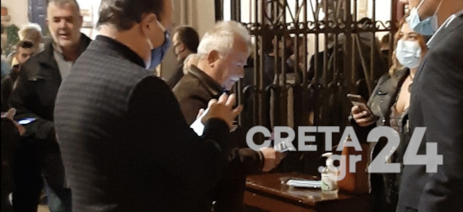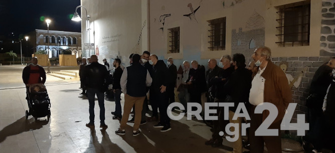 Ο κόσμος άρχισε λίγο μετά τις 6 και μισή το απόγευμα να συγκεντρώνεται στο Ωδείο Ρεθύμνου. Από τα μικρόφωνα άρχισαν σχεδόν αμέσως οι εκκλήσεις για έγκαιρη είσοδο των εμβολιασμένων στο κτήριο, για την αποφυγή συνωστισμού.