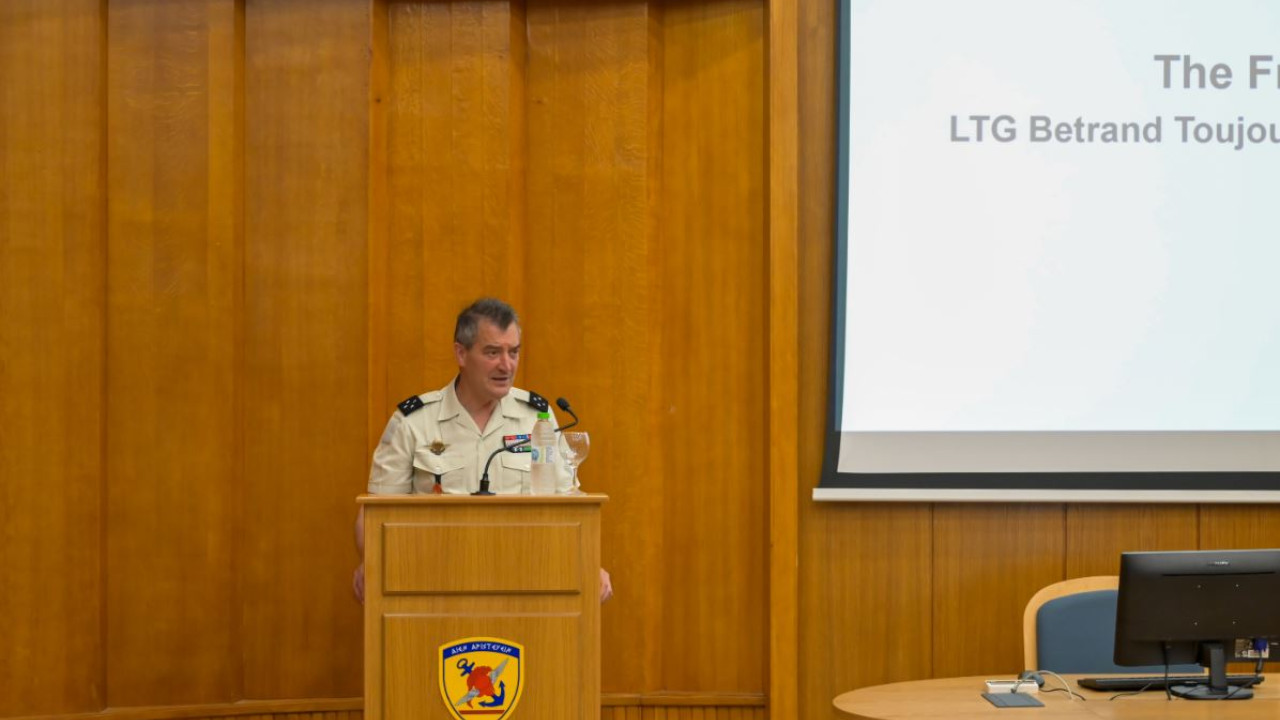 Στη συνέχεια ο αντιστράτηγος Bertrand Toujouse απεύθυνε σύντομο χαιρετισμό σε προσωπικό και των τριών κλάδων των Ενόπλων Δυνάμεων.