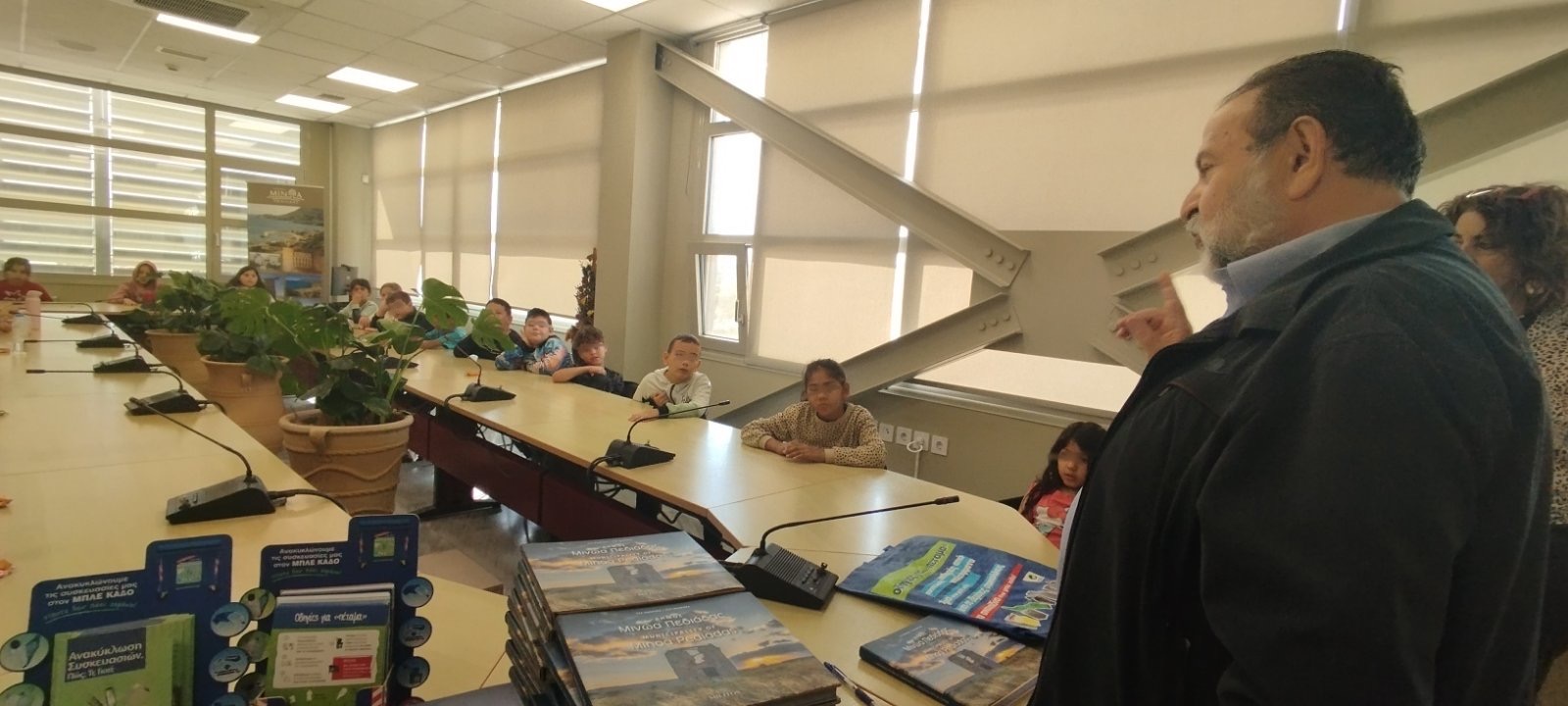 Τα παιδιά υποδέχτηκαν ο Δήμαρχος Βασίλης Κεγκέρογλου, ο Γενικός Γραμματέας του Δήμου Νίκος Μπελενιώτης και οι Αντιδήμαρχοι Όλγα Δραμουντάνη και Στέφανος Ψυλλάκης. Ο Δήμαρχος τους ενημέρωσε για τη λειτουργία του Δήμου, τα θέματα που συζητούνται στο Δημοτικό Συμβούλιο, τις αρμοδιότητες των αιρετών ενώ τους εξήγησε με ποιο τρόπο λαμβάνονται οι αποφάσεις ώστε να προχωρήσει ένα μεγάλο ή μικρό έργο που αφορά στον τόπο.