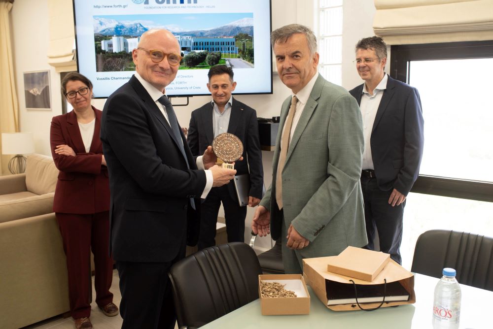 Το Ίδρυμα Τεχνολογίας και Έρευνας (ΙΤΕ) επισκέφθηκε ο Πρέσβης της Ομοσπονδιακής Δημοκρατίας της Γερμανίας, κ. Ανδρέας Κίντλ, συνοδευόμενος από τον Δρ. Γιώργο Καλουτσάκη, Επίτιμο Πρόξενο στο Ηράκλειο, την Δευτέρα 26 Μαΐου 2025.