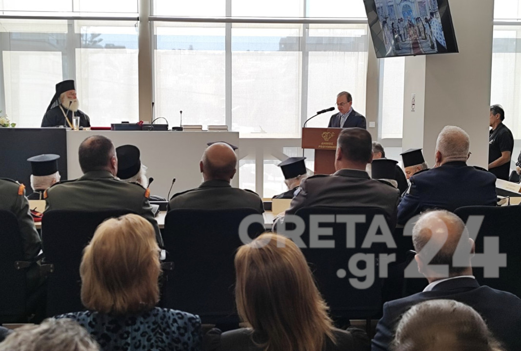 Στην τελετή που πραγματοποιήθηκε στο δημαρχείο Ρεθύμνου έδωσαν το «παρών» εκπρόσωποι αρχών, φορέων και των σωμάτων ασφαλείας του τόπου, αλλά και ιεράρχες από όλο το νησί.