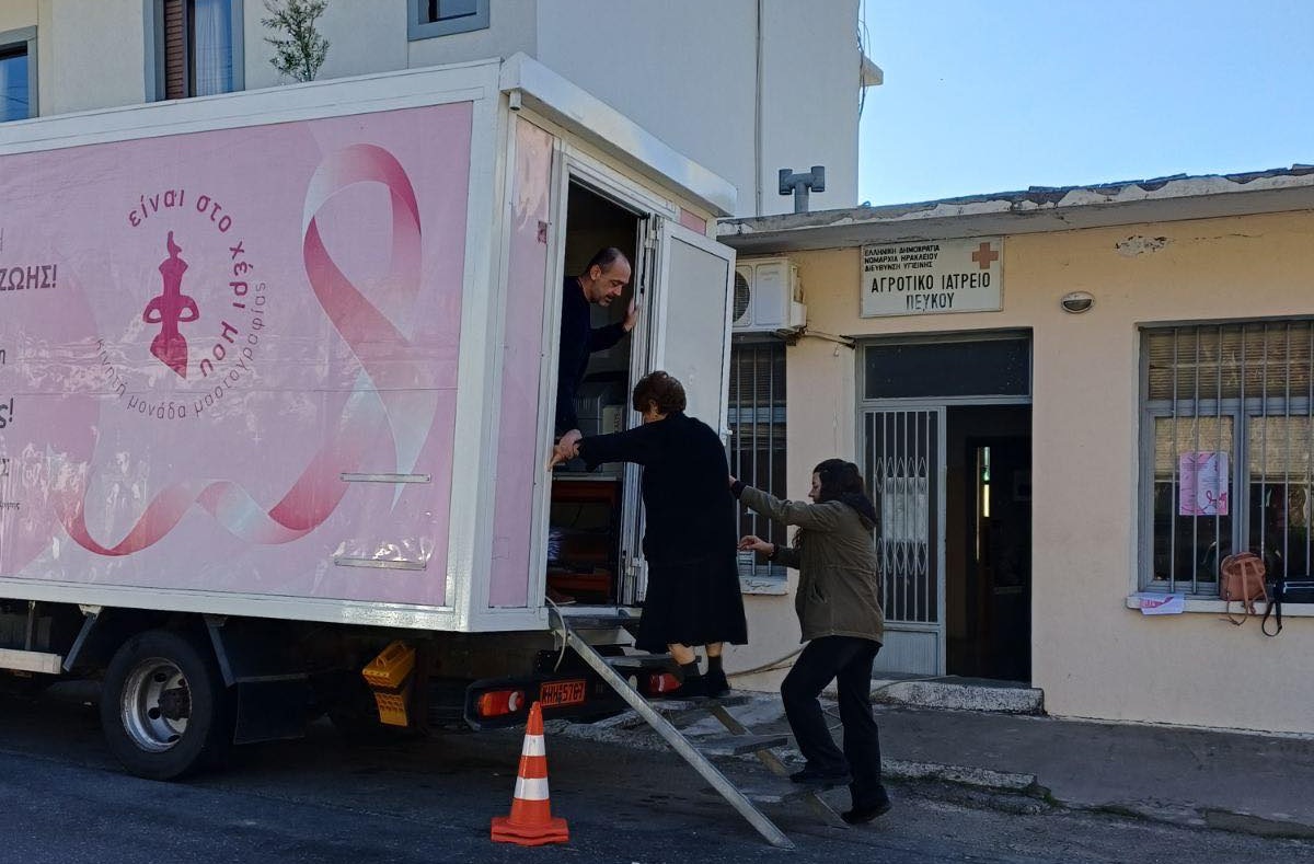 Η Κινητή Μονάδα Μαστογραφίας της Περιφέρειας Κρήτης συνέχισε την επιτυχημένη παρουσία της στο Δήμο Βιάννου, μιας και βρέθηκε στις 18 Δεκεμβρίου έξω από το Περιφερειακό Ιατρείο Πεύκου.