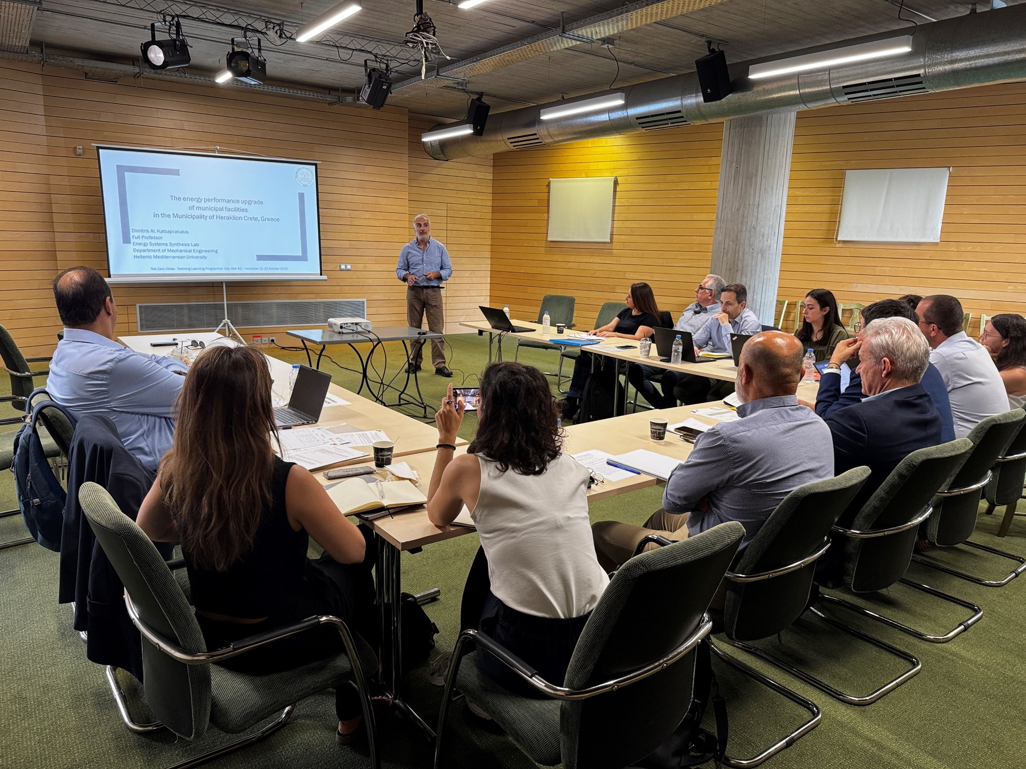 Ομιλία του Δρ. Δημήτρη Κατσαπρακάκη Μηχανολόγου Μηχανικού καθηγητή του τμήματος Μηχανολόγων Μηχανικών της Πολυτεχνικής Σχολής του ΕΛ.ΜΕ.ΠΑ ο οποίος παρουσίασε τις μελέτες για την ενεργειακή αναβάθμιση του κτηρίου της Loggia και του Παγκρητίου Σταδίου.