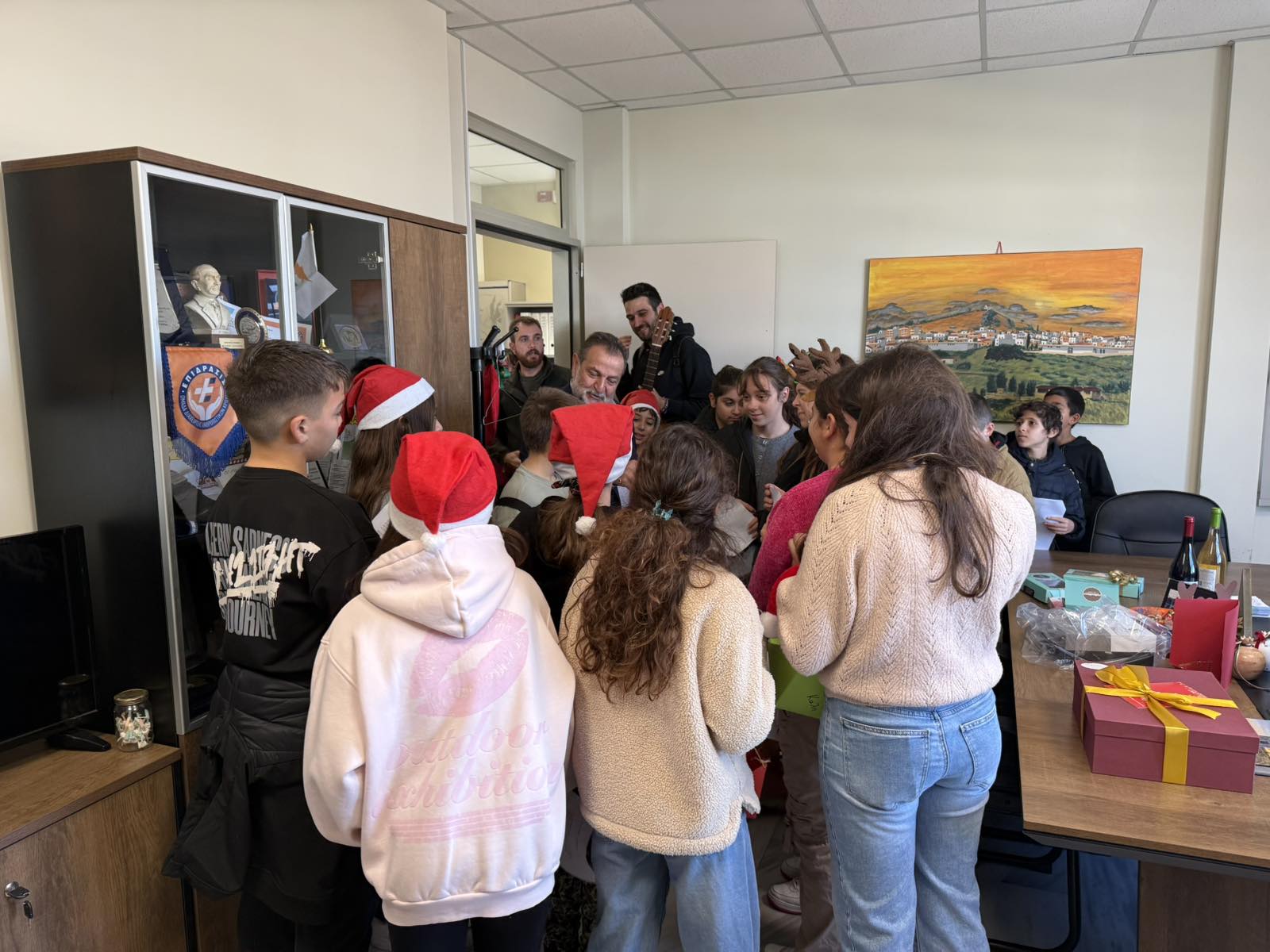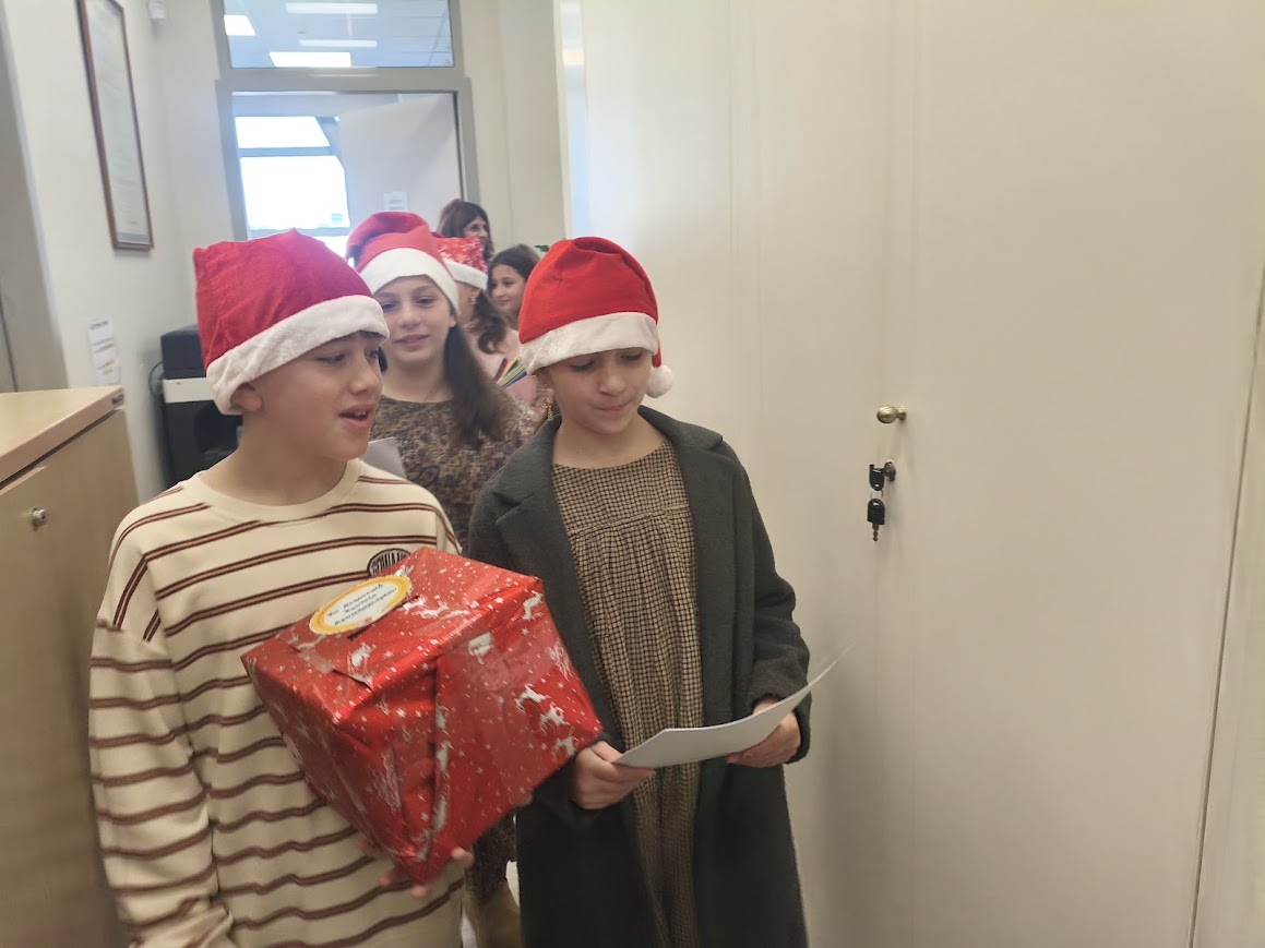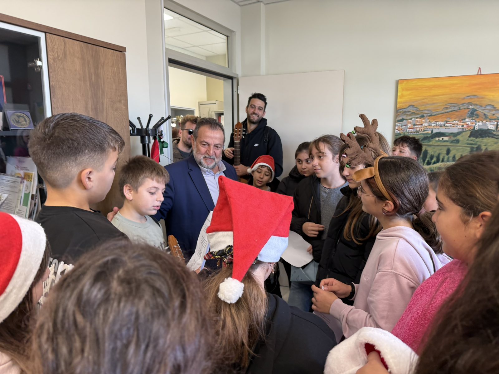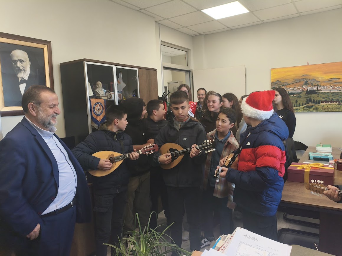Ο Δήμαρχος, οι Αντιδήμαρχοι, οι εντεταλμένοι δημοτικοί σύμβουλοι και το προσωπικό του Δήμου, υποδέχτηκαν με ιδιαίτερη χαρά τους μαθητές και τους εκπαιδευτικούς που τους συνόδευαν, ανταλλάσσοντας θερμές ευχές για χαρούμενες γιορτές, με υγεία, πρόοδο, δημιουργικότητα και πολλές ευτυχισμένες στιγμές.