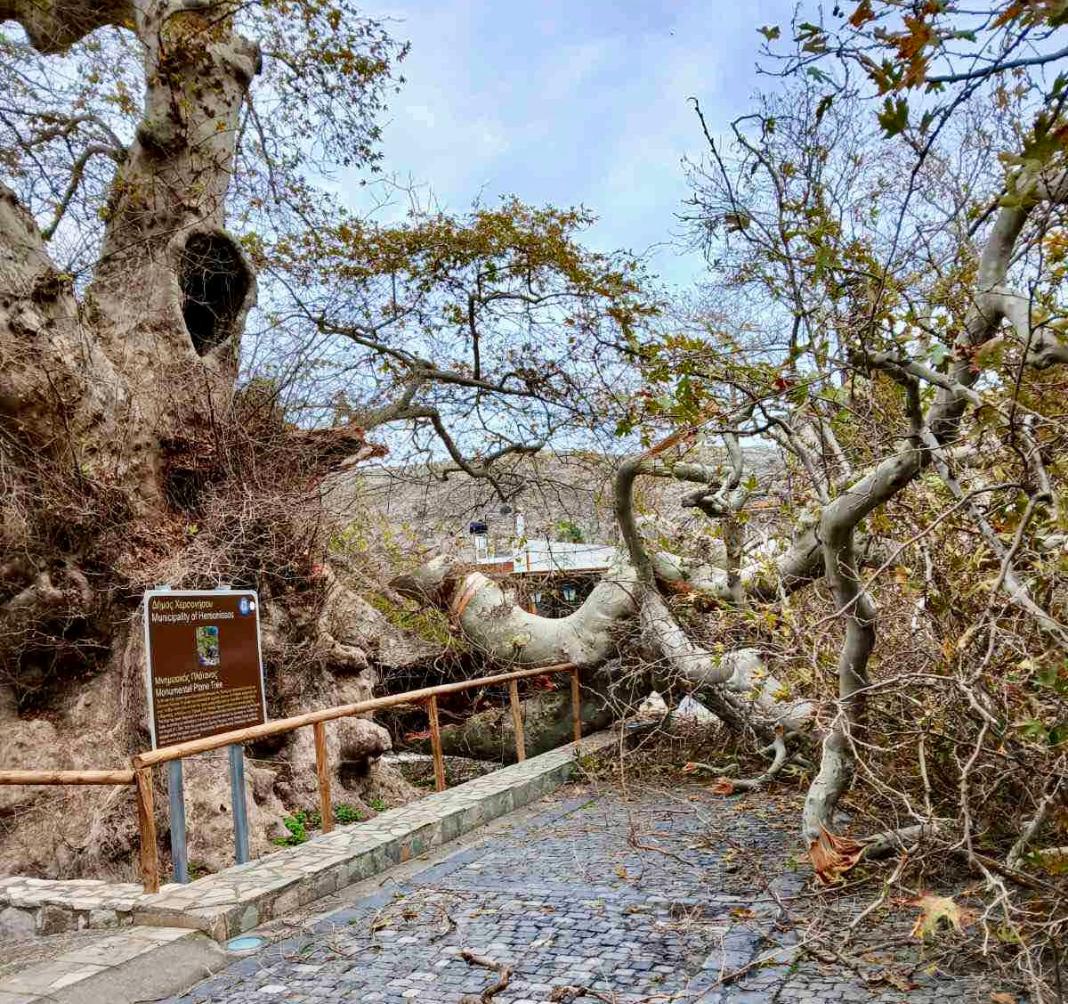 Άμεση ήταν η ανταπόκριση του Δήμου Χερσονήσου, στην πτώση κλάδου του ιστορικού πλατάνου στον οικισμό Κράσι.