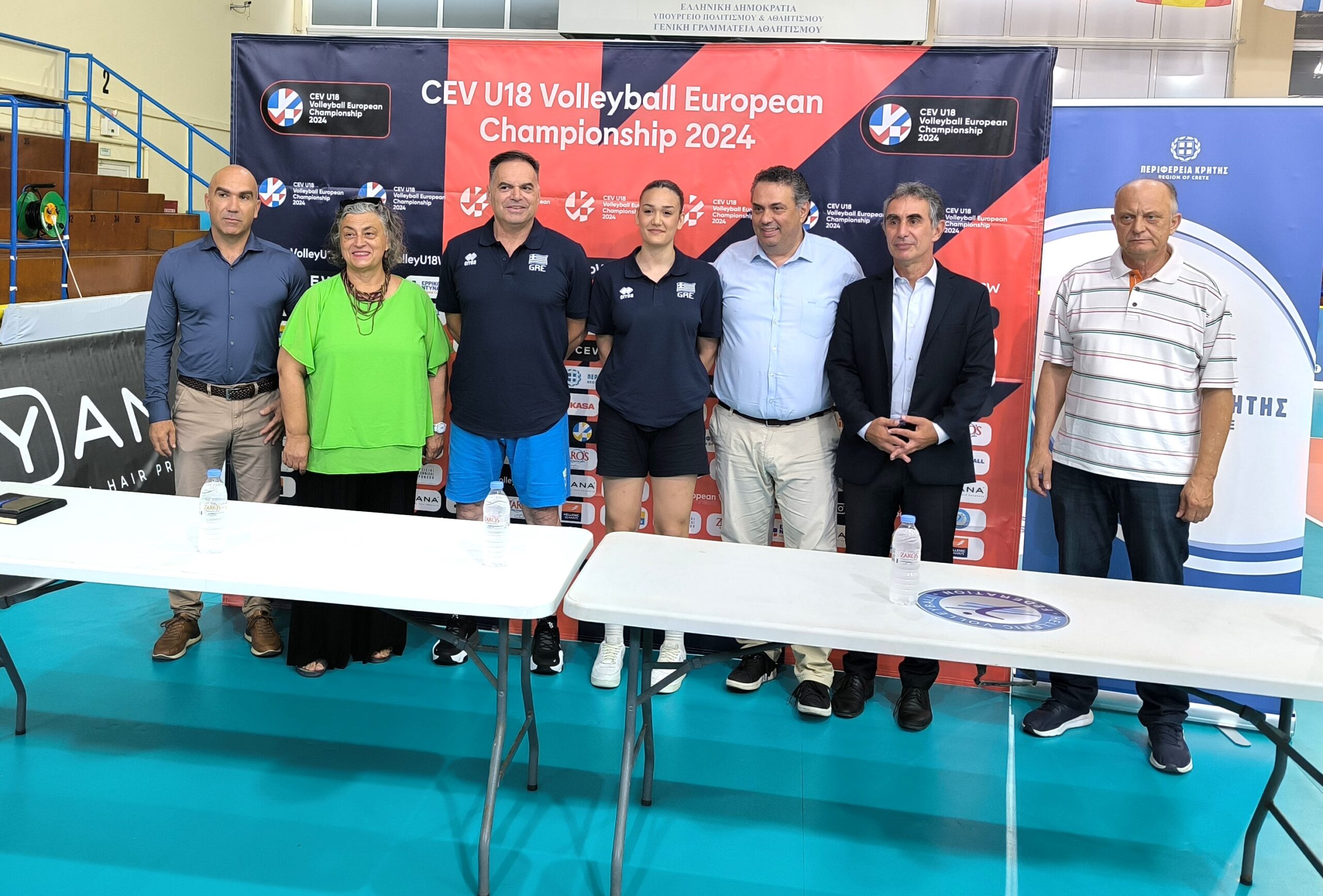 Ο αναπληρωτής Περιφερειάρχης Γιώργος Πιτσούλης, ο Πρύτανης του ΕΛΜΕΠΑ Νίκος Κατσαράκης, ο εκτελεστικός διευθυντής της ΕΟΠΕ (Ελληνική Ομοσπονδία Πετοσφαίρισης) Περικλής Μπακοδήμος, ο προπονητής της Εθνικής ομάδας Κώστας Γκούντας, η αρχηγός της εθνικής ομάδας Όλγα Δρέμπελα, ο πρόεδρος του ΕΑΚΗ Μένανδρος Παντελλίδης και το μέλος του δ.σ. της ΕΟΠΕ Μαρία Καλουδιώτη.