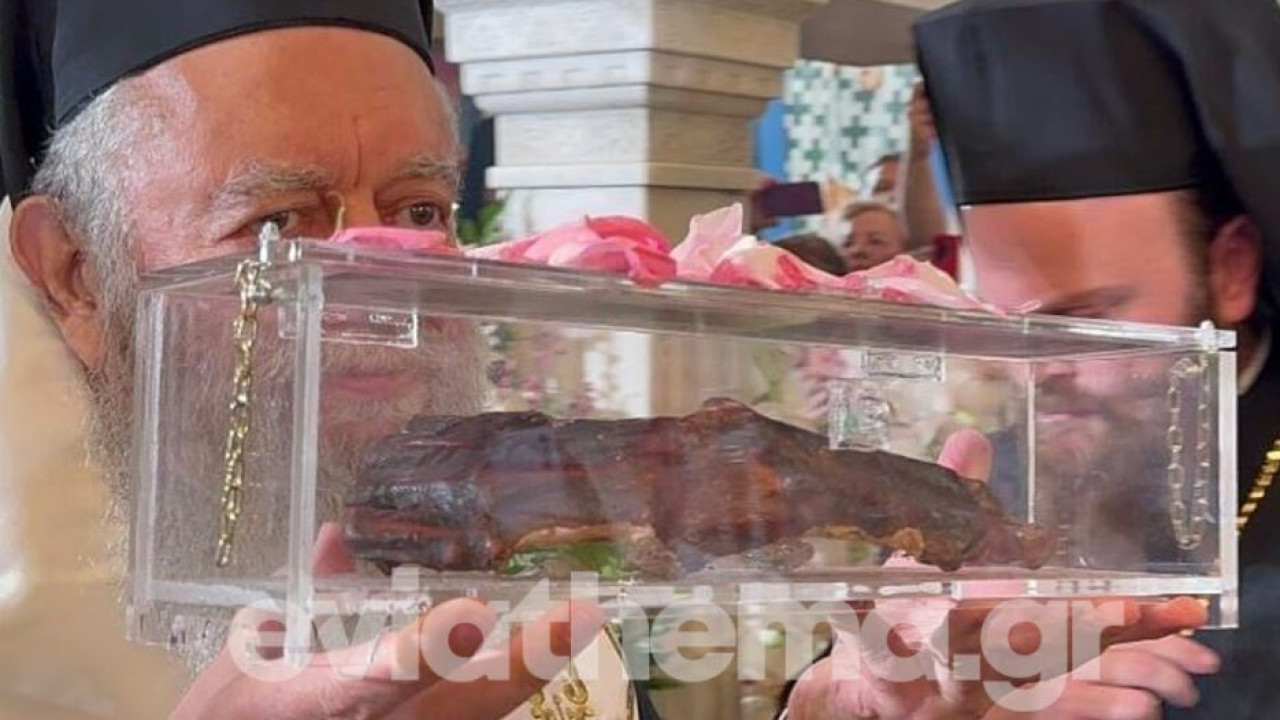 Το απόγευμα της Κυριακής ολοκληρώθηκε η μεταφορά της δεξιάς χειρός και επανενώθηκε με το άφθαρτο σκήνωμα του Οσίου Ιωάννου του Ρώσσου στο Νέο Προκόπι Ευβοίας.