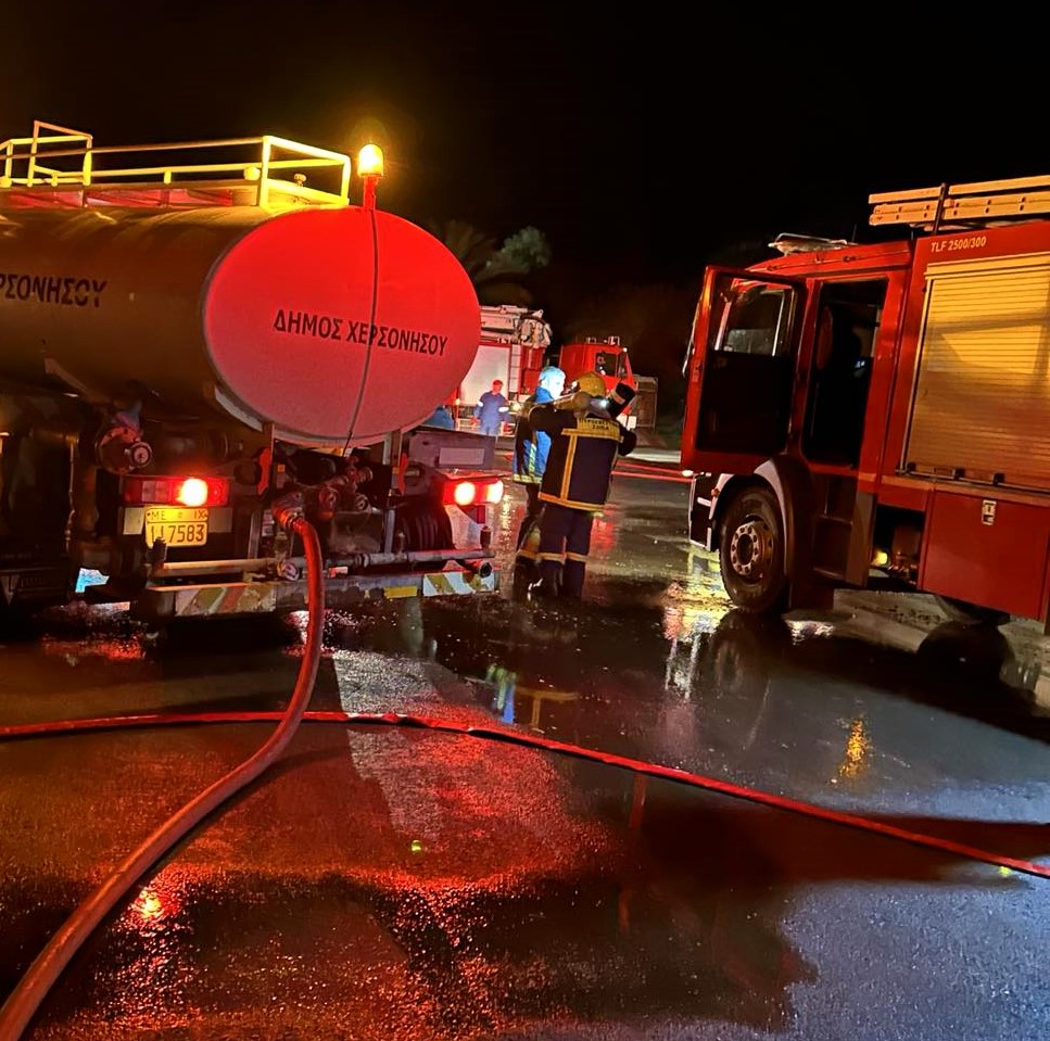 “Ο Δήμος Χερσονήσου και η Πολιτική Προστασία Χερσονήσου κινητοποιήθηκαν άμεσα το βράδυ της Τρίτης, με αφορμή την πυρκαγιά που εκδηλώθηκε σε αποθήκη τροφίμων στην ευρύτερη περιοχή της Ελιάς.
