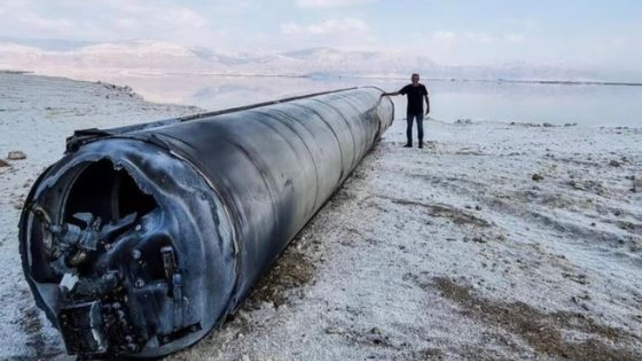 Φωτογραφία από βαλλιστικό πύραυλο του Ιράν, ο οποίος ανασύρθηκε από τη Νεκρά Θάλασσα, έδωσε στη δημοσιότητα η ισραηλινή πρεσβεία στην Ελλάδα.
