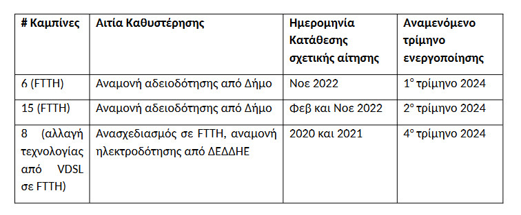 Σχετικά με το στάδιο που βρίσκεται σήμερα η εξέλιξη του έργου, η Εθνική Επιτροπή Τηλεπικοινωνιών και Ταχυδρομείων, ενημερώνει το Βουλευτή πως για το Δήμο Ηρακλείου η WIND, αιτήθηκε 385 υπαίθριες καμπίνες τεχνολογίας VDSL Vectoring (364) και τεχνολογίας FTTH (21). Μέχρι 30 Απριλίου του 2023, εταιρεία είχε ολοκληρώσει την υλοποίηση 356 υπαίθριων καμπινών VDSL, επισημαίνοντας πως για τις 21 καμπίνες βρίσκεται σε εκκρεμότητα από το Νοέμβριο του 2022, η σχετική αδειοδότηση.