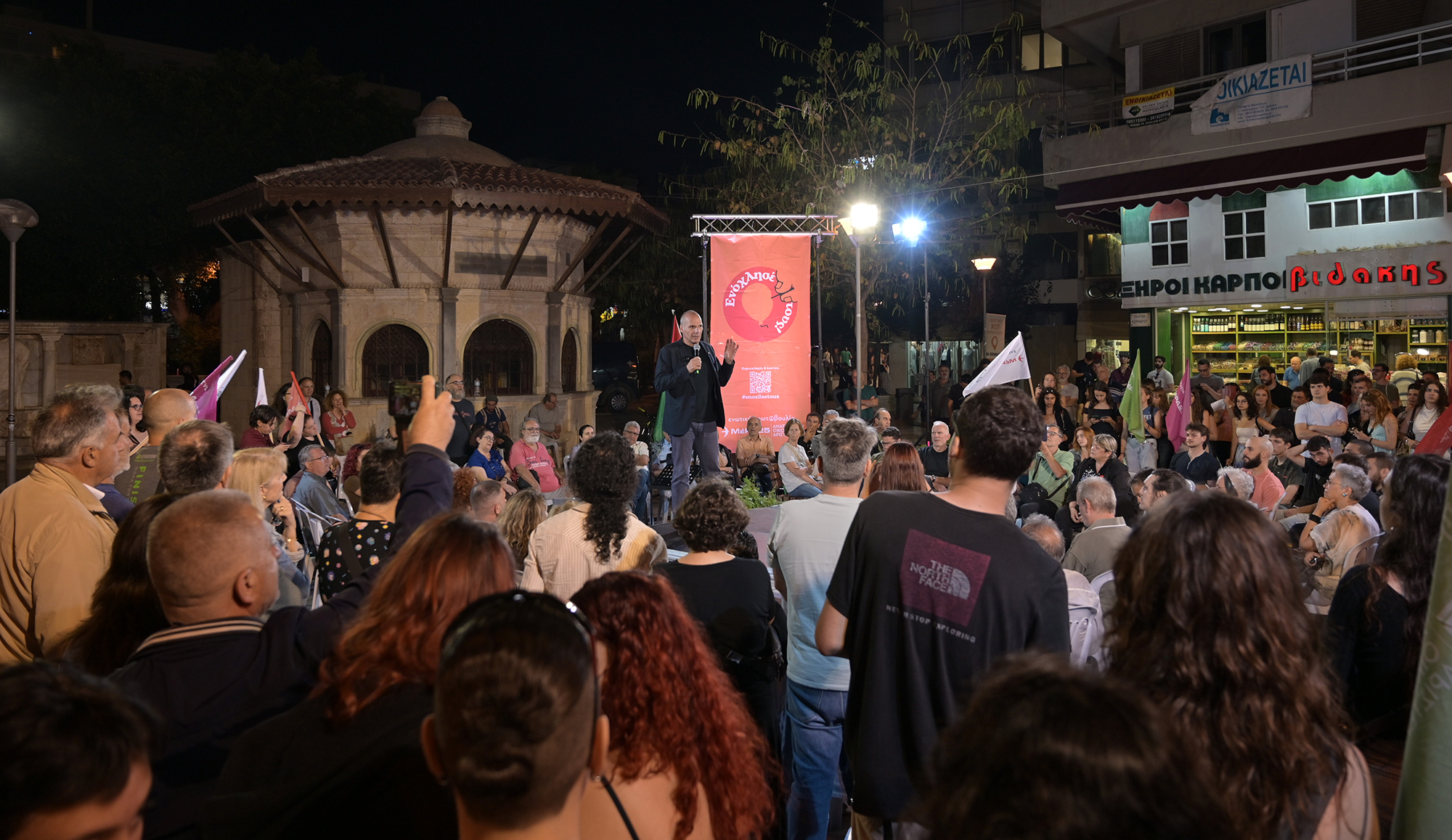 Με τη συμμετοχή εκατοντάδων ανθρώπων, και κυρίως νέων παιδιών φοιτητών και εργαζομένων, πραγματοποιήθηκε η προεκλογική συγκέντρωση της ενωτικής πρωτοβουλίας ΜέΡΑ25 | Ανατρεπτική Οικολογική Αριστερά στο Ηράκλειο Κρήτης, με κεντρικό ομιλητή τον Γιάνη Βαρουφάκη, την Παρασκευή 31 Μάϊου.