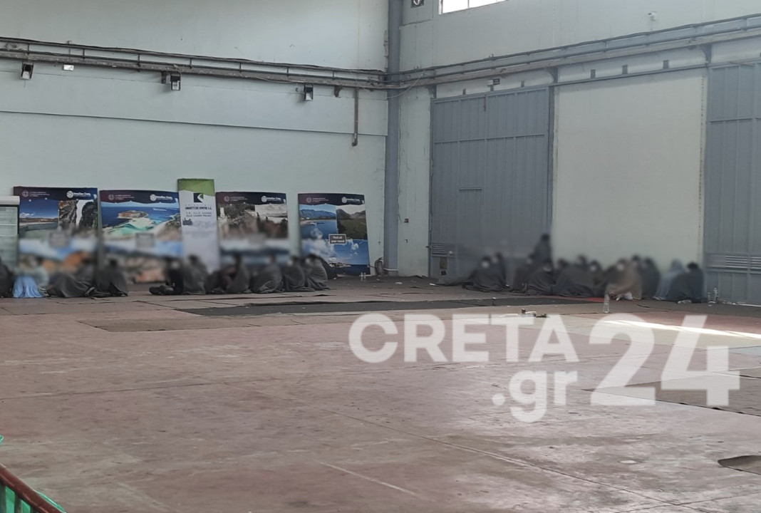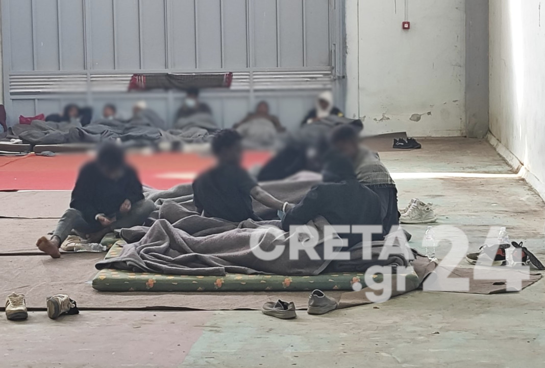 Οι 89 μετανάστες που εντοπίστηκαν 28 ν.μ. νότια της Γαύδου και διασώθηκαν από δεξαμενόπλοιο, φιλοξενούνται στο κτίριο του παλιού ΚΤΕΛ στο Ηράκλειο.