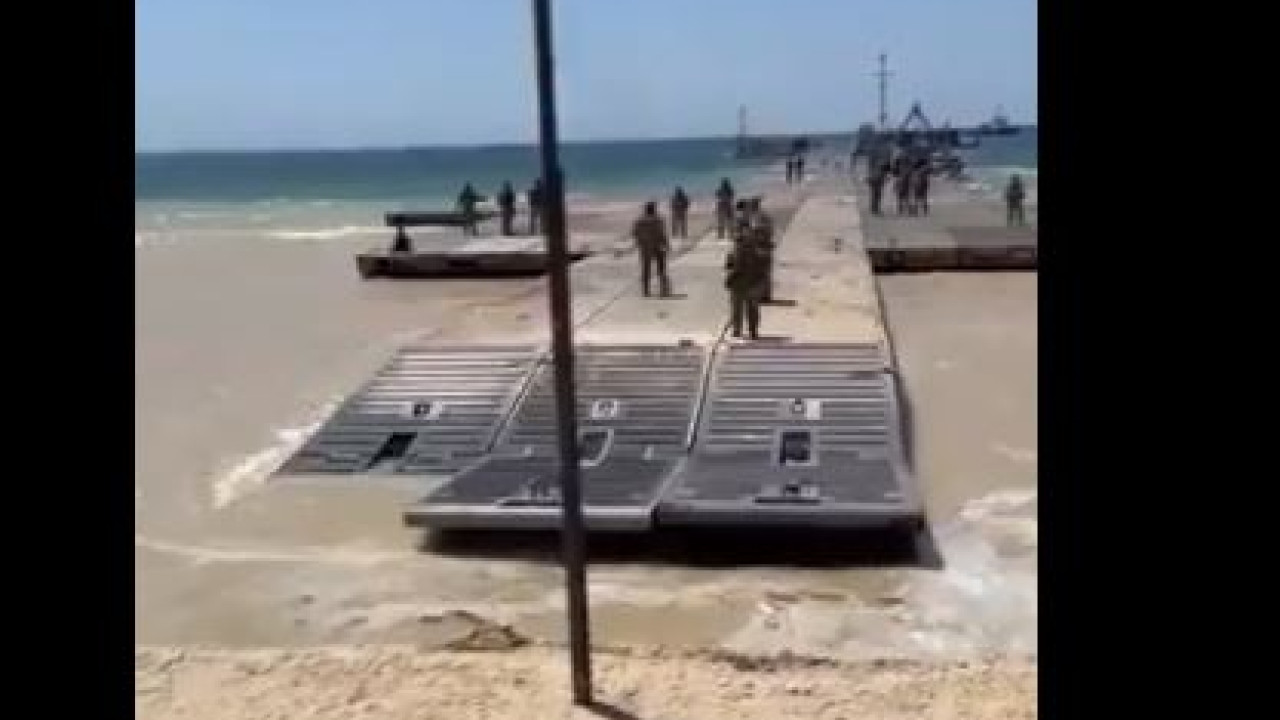 #USA #Gaza The US military’s establishment of a pier on the shore of Gaza. pic.twitter.com/B3oPioy1tZ