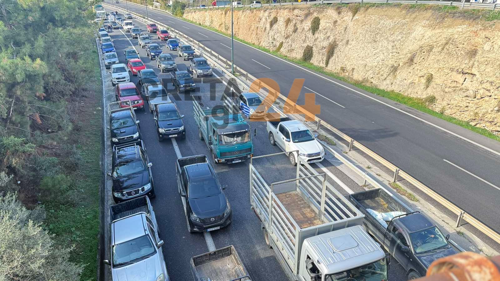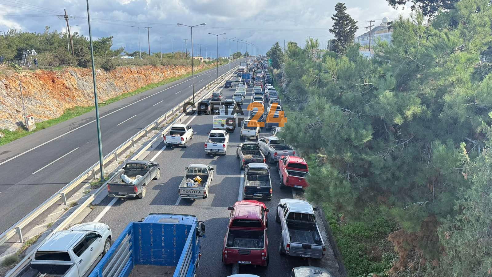 Μάλιστα, όπως βλέπετε στις φωτογραφίες που δημοσιεύει τo Creta24.gr, αγροτικά οχήματα είναι παρκαρισμένα στον ΒΟΑΚ με αποτέλεσμα το ρεύμα από το Ηράκλειο προς το αεροδρόμιο να είναι ουσιαστικά αδιάβατο.