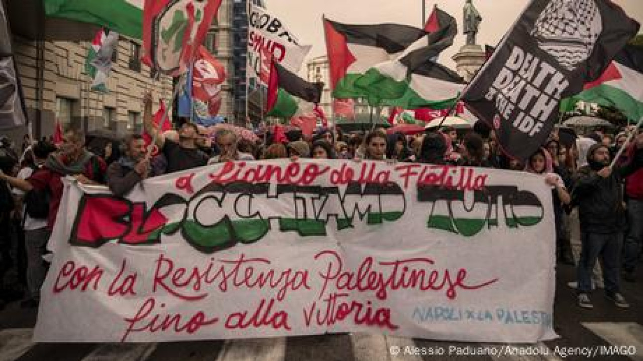 Την περασμένη νύχτα πραγματοποιήθηκαν πορείες διαμαρτυρίας για την αναχαίτιση της Flottilla αλλά και σε ένδειξη αμφισβήτησης της στάσης της ιταλικής κυβέρνησης, σε τριάντα πέντε πόλεις της χώρας. Στο Παλέρμο η αστυνομία συγκρούσθηκε με τους διαδηλωτές και ένας ακτιβιστής τραυματίσθηκε. Στη Ρώμη και στη Νάπολη έχουν γίνει καταλήψεις σε πανεπιστημιακές σχολές, ενώ οι εργάτες στα λιμάνια του Λιβόρνο και της Γένοβας έκαναν γνωστό ότι θα συνεχίσουν να εμποδίζουν τις διαδικασίες φόρτωσης των πλοίων. Όλα δείχνουν, δηλαδή, ότι οι πορείες και οι διάφορες πρωτοβουλίες διαμαρτυρίας δεν πρόκειται να εξαντληθούν με τη γενική απεργία της αυριανής ημέρας.