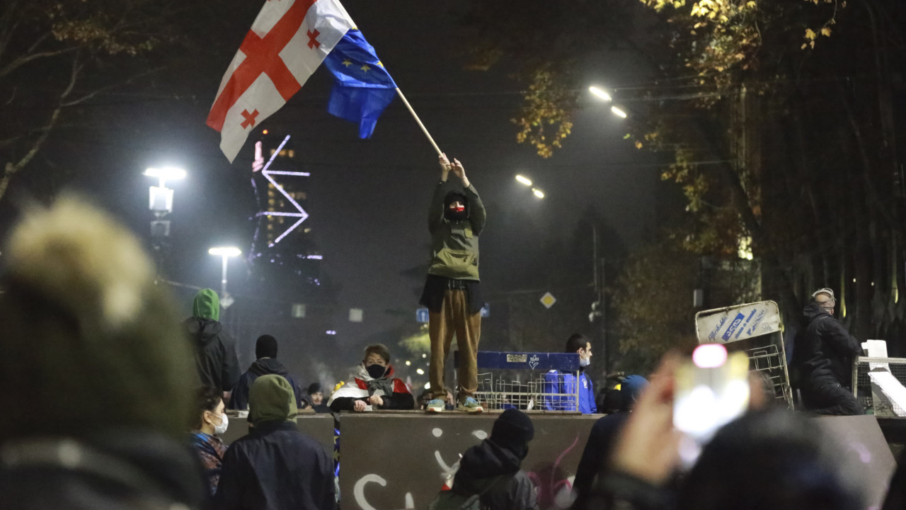 Στην Τιφλίδα, οι διαδηλωτές έκαναν οδοφράγματα, σπάζοντας τζάμια και ρίχνοντας πυροτεχνήματα έξω από το κοινοβούλιο, σε μια ακόμη νύχτα κινητοποιήσεων κατά της κυβέρνησης που διέκοψε τις συνομιλίες για ένταξη της χώρας στην Ευρωπαϊκή Ένωση.