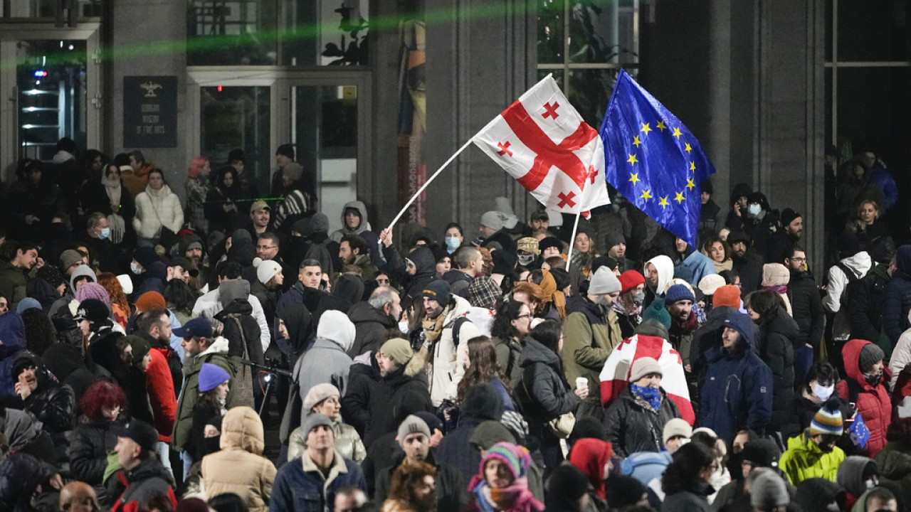 Η πρώην σοβιετική δημοκρατία διανύει νέα ταραχώδη περίοδο αφότου το κυβερνών κόμμα ανακήρυξε τη νίκη του στις βουλευτικές εκλογές της 26ης Οκτωβρίου και η κυβέρνηση αποφάσισε τον περασμένο μήνα να αναστείλει ως το 2028 τις ενταξιακές διαπραγματεύσεις με την ΕΕ.